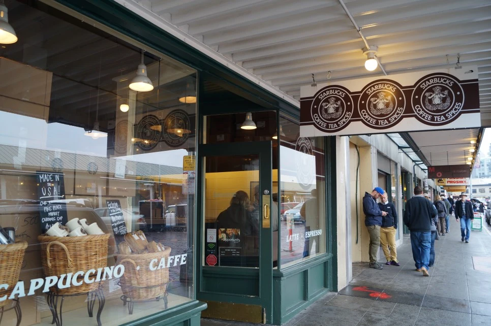 하워드 슐츠의 책에서 말했던대로 처음 그를 홀렸던 스타벅스 1호점은 시애틀의 재래시장격인 파이크플레이스 마켓의 안쪽에 위치해있다.