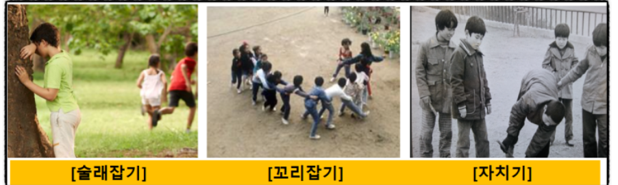 여러 친구들과 짝을 지어 편을 만들고 공격과 수비를 서로 격렬한 몸짓(?)으로 하는 놀이들이 우리 시대 놀이들이었다.