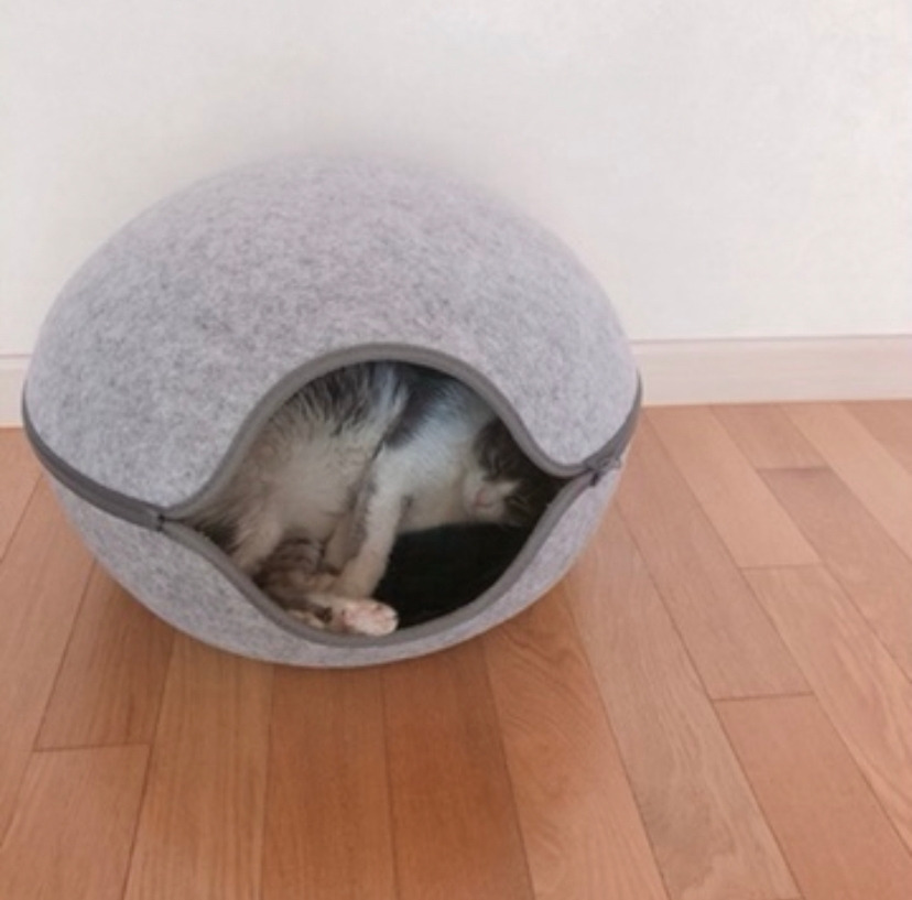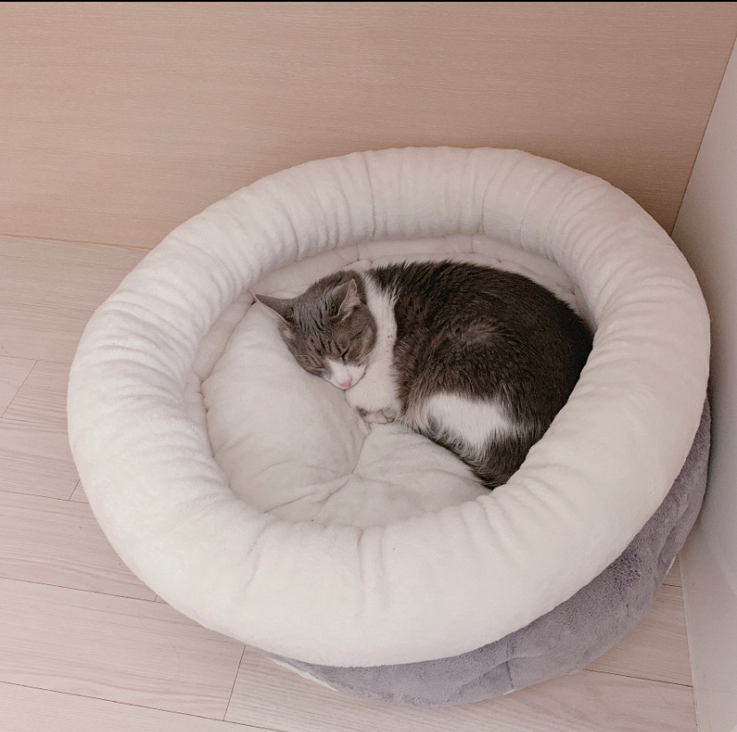 휴식을 위한 공간으로 포근하고 아늑한 느낌을 줄 수 있는 고양이 집이 필요합니다. 모양과 색상 등 종류가 다양해 집사의 취향에 맞게 선택하면 됩니다. 저는 기니가 그레이 컬러를 가진 고양이라 그레이 색상을 가진 숨숨집을 샀습니다. 겨울에는 따뜻한 느낌을 주는 고양이 방석을 구입했습니다.