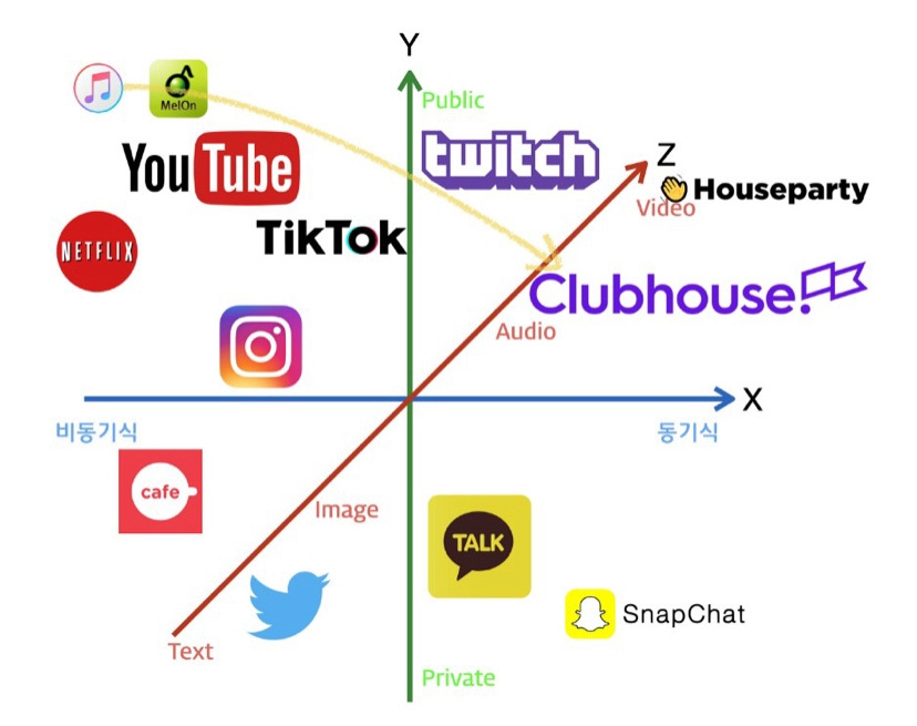 - 굉장히 단순한 인터페이스에 음성 기반의 소셜미디어, 클럽하우스.
