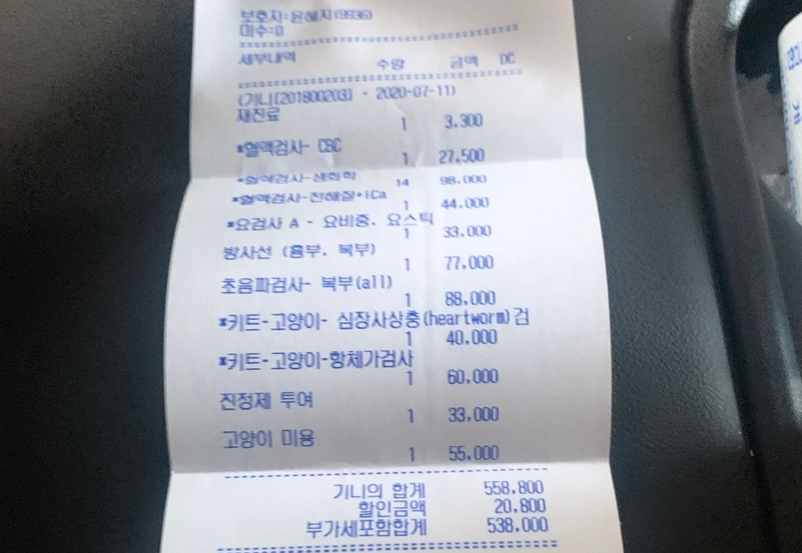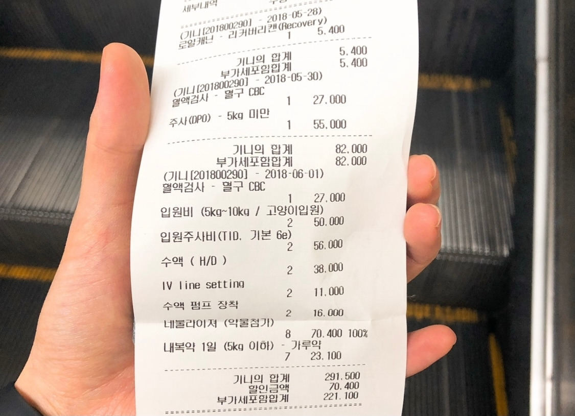 동물 병원의 진료비는 동물병원마다 다르게 정하고 있기에 비교하기도 어렵고 어디까지 검사와 진료와 치료를 받아야 하는지 무지하기에 의사 선생님의 말을 그대로 따를 뿐입니다. 그나마 고양이 친화 동물병원을 찾아다니며 의사 선생님들과 상담을 해보면서 저와 우리 기니에게 정서적으로(?) 실력으로 잘 맞는 곳을 찾을 뿐이죠.