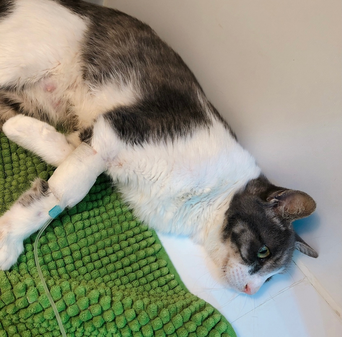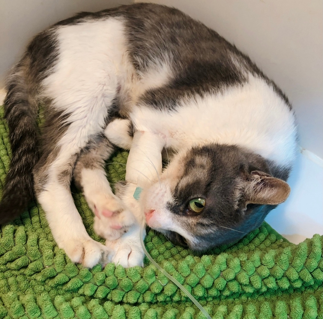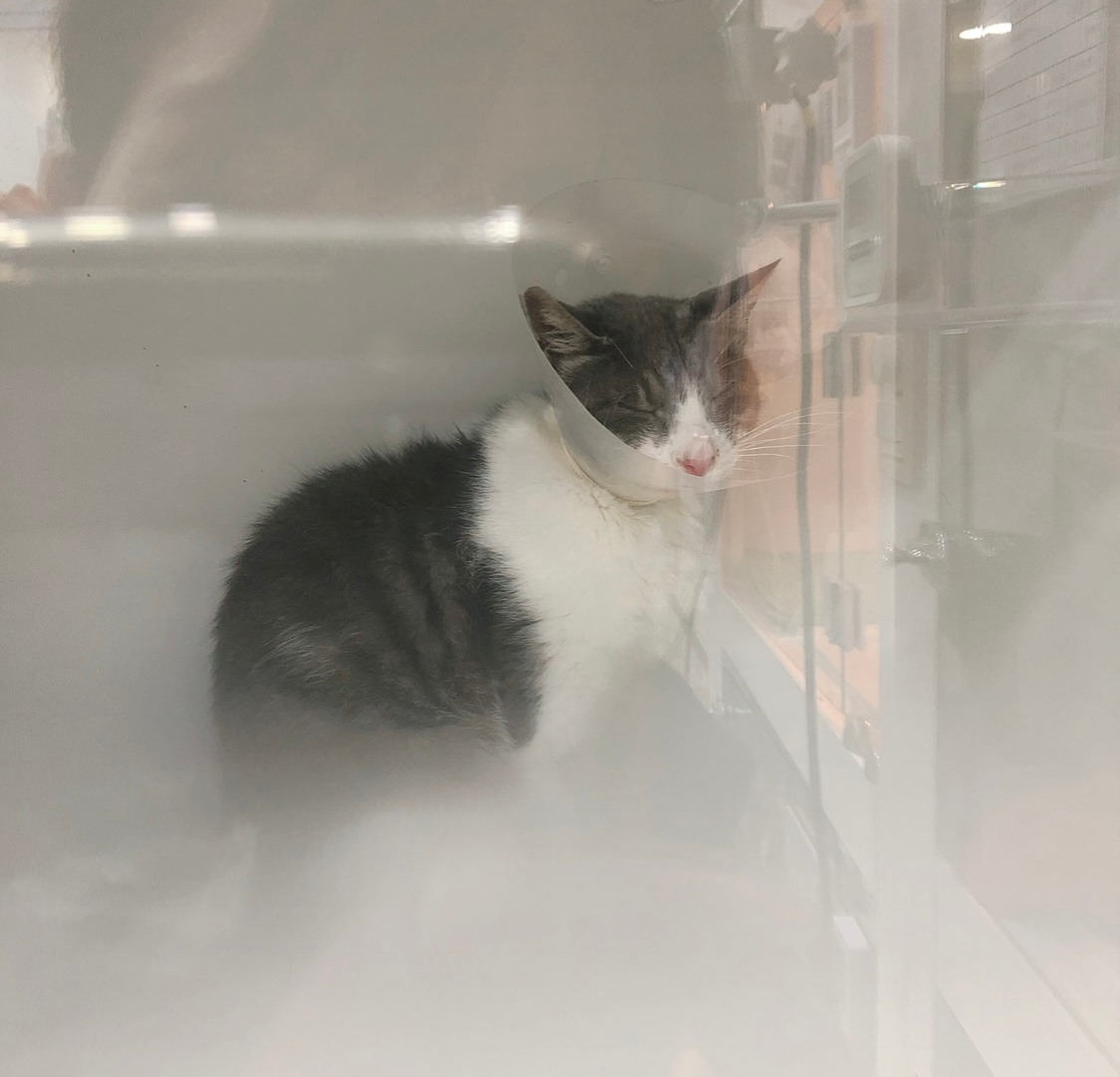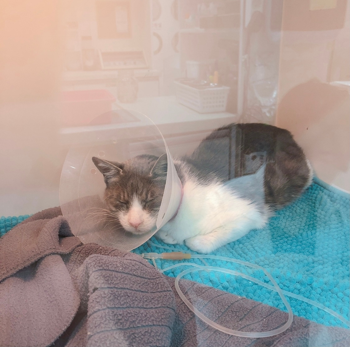 척박한 길거리 생활을 한 아이들은 구조 즉시 동물병원에 가서 기본적인 검진과 함께 2가지 전염병 검사를 받습니다. 제가 기르는 고양이 기니의 경우에는 상태가 좋지 않아 응급처치를 한 후, 전염병 검사를 받았습니다. 고양이들이 가장 많이 걸리는 전염병은 2가지로 고양이상부호흡감염증과 고양이범백혈구감소증입니다. 기니의 경우는 고양이상부호흡기감염증이 걸린 상태였습니다.