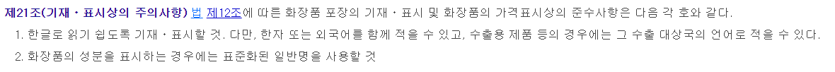 화장품법 시행규칙 : https://www.law.go.kr/LSW/lsInfoP.do?efYd=20190314&lsiSeq=208093#0000