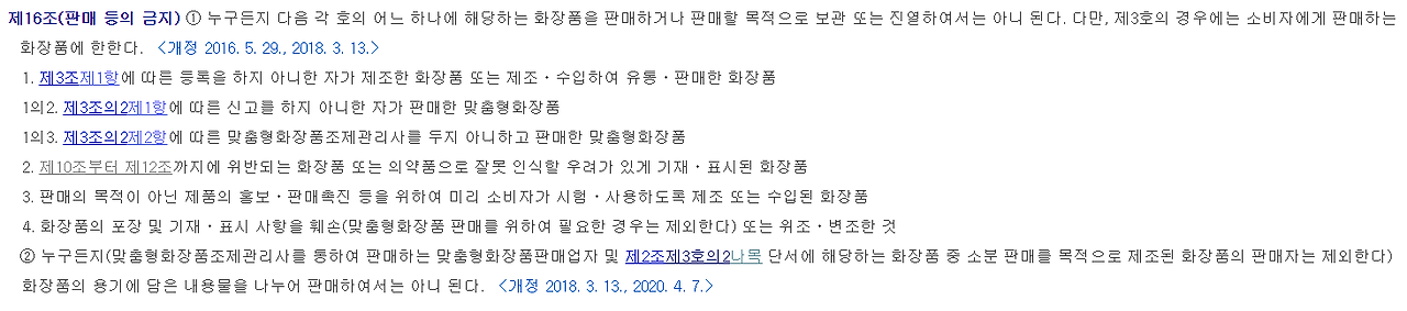 화장품법 : https://www.law.go.kr/%EB%B2%95%EB%A0%B9/%ED%99%94%EC%9E%A5%ED%92%88%EB%B2%95
