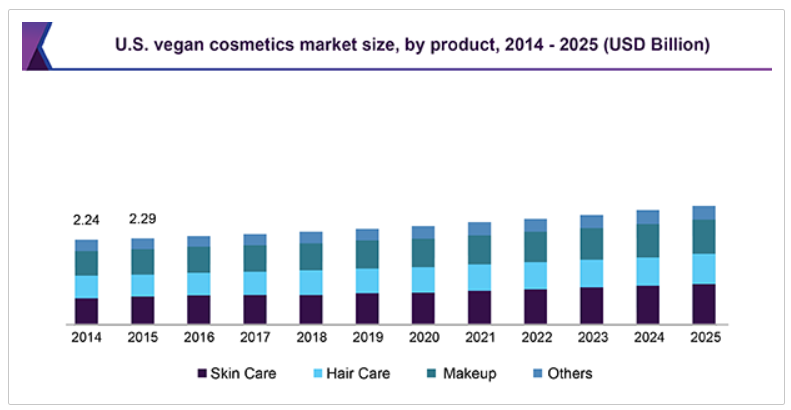 그랜드뷰리서치에 따르면 미국 비건 화장품 시장은 연평균 6.3% 성장하고 있으며, 2025년에는 208억 달러(23조 2,800억 원)에 이를 것으로 전망하고 있습니다. 비건 화장품의 경우 비건 식생활에 비해 생산자와 소비자 모두 쉽게 접근하고 제품화할 수 있기에 성장률은 더 높아질 것 같습니다. 왜 비건 뷰티가 중요해졌을까요? 아무래도 반려동물 가구의 증가로 소비자들도 동물 복지에 대해서 고려하기 시작했습니다. 오랫동안 미국과 유럽 등 선진국에서는 "동물 윤리"가 중요한 키워드였는데 가치 소비 트렌드와 맞물려 의미가 더 커졌습니다. *소비자들은 화장품의 성분 이외에도 만드는 과정 자체에 관심을 갖기 시작했다는 점과 MZ세대가 가치 소비, 환경 윤리 미션에 동참하는 브랜드를 더 지지한다는 것도 기업들의 움직임에 영향을 준 것 같습니다.