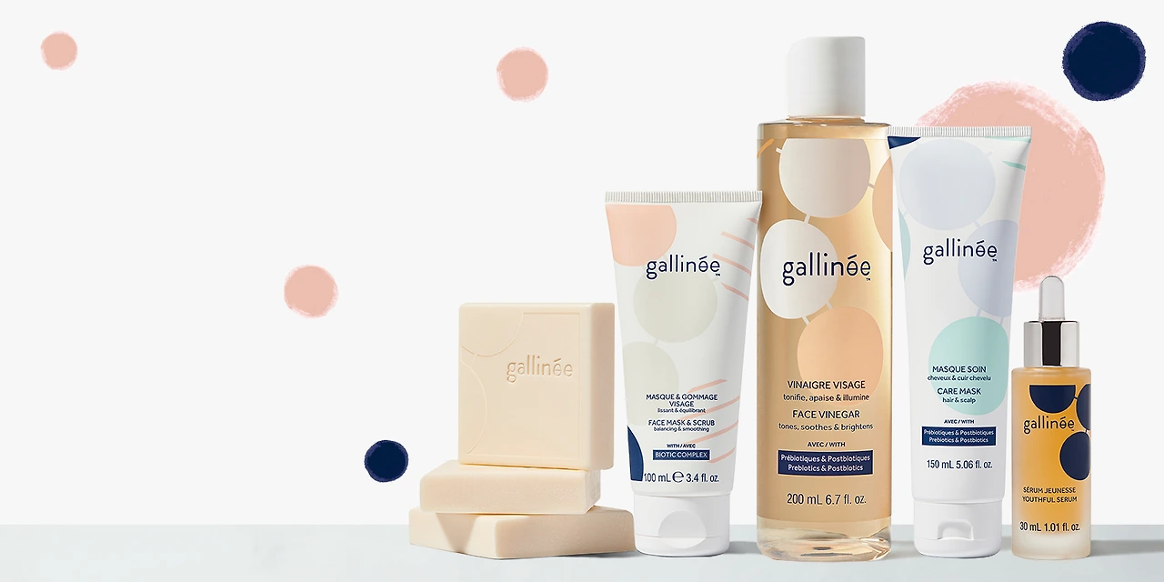 이 트렌드를 반영해서 나온 브랜드는 'gallinee'라는 브랜드를 소개합니다. 여드름, 아토피 등 피부질환 분야와 접목시킨 스킨케어 브랜드로 세포라에서 만날 수 있습니다. 기술적인 접근과 감각적이고 트렌디한 패키징(Packaging)이 특징입니다. 또 앞에서 말한 프로바이오틱스와 프리바이오틱스(Probiotics & prebiotics) 모두 적용한 특허기술 제품을 출시했습니다. 건강한 피부를 위한 스킨케어 브랜드로 'Happy microbiome, happy skin! Bring your skin to life!'로 커뮤니케이션하고 있습니다.