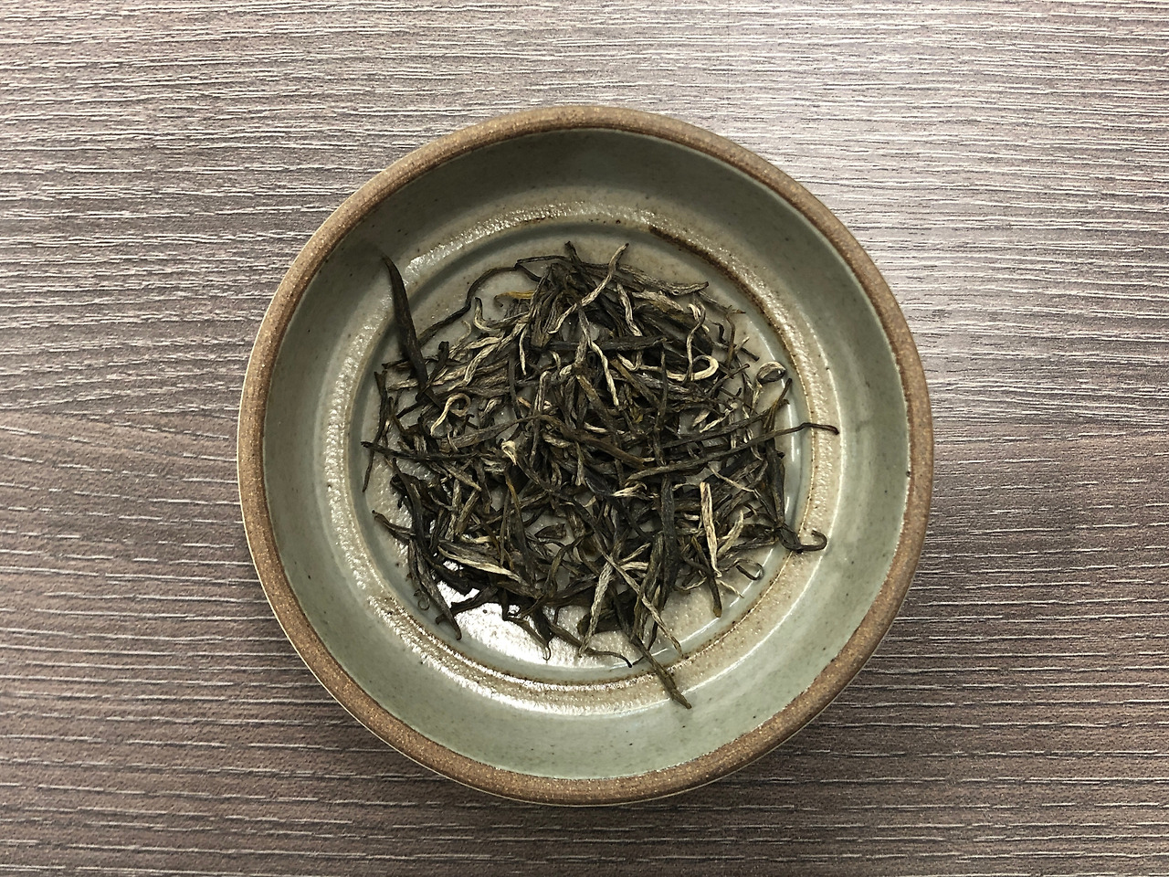 위의 사진에서 볼 수 있듯 차 건엽(마른 잎)의 모양이 올곧게 뻗어 있는 게 특징입니다. 올곧다는 단어가 참 좋게 다가왔어요. 이 ‘올곧다'는 의미에 꽂혀 한참을 바라봤습니다.