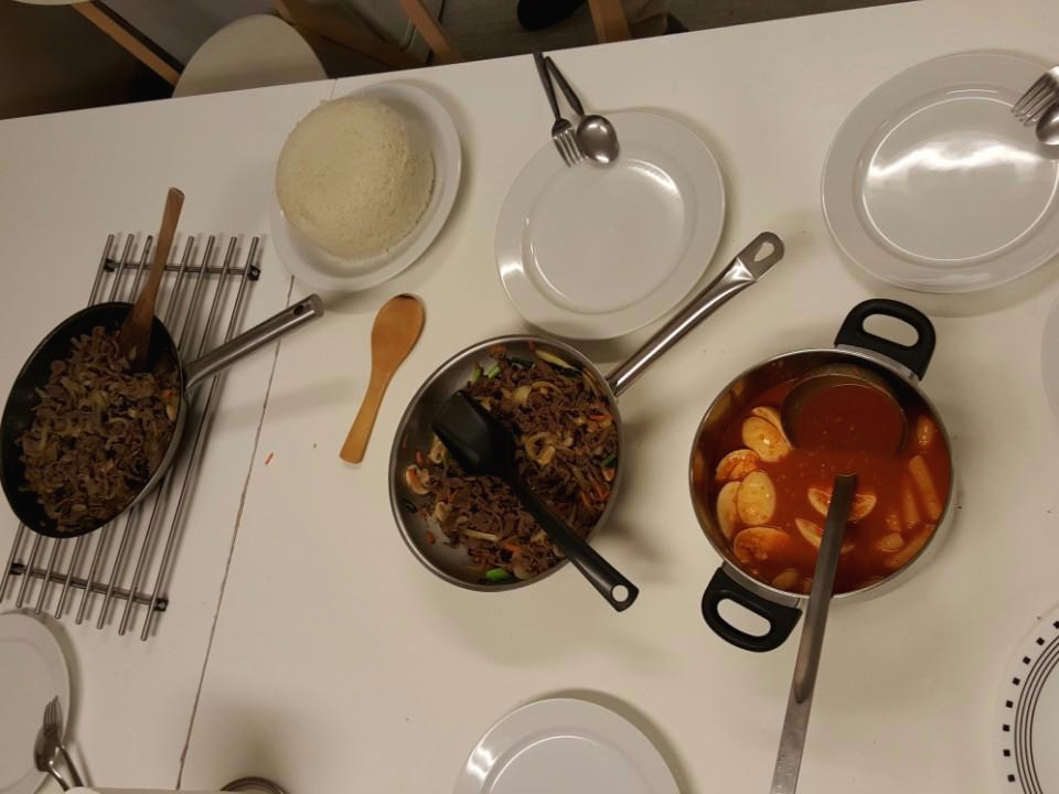 인트로덕션 위크가 끝나고 버디 그룹과 조금 소원해진 이후 컨테이너 친구들이 정말 큰 힘이 되어주고 있다. 다른 컨테이너의 분위기가 어떤지 잘 모르겠지만 우리 컨테이너는 정말 화목하다. 친구 몰래 깜짝 생일 파티를 준비해서 서로에게 감동을 주기도 하고, 특히 남자들은 밖에 놀러 갈 갈 때 나를 빼놓지 않고 챙겨준다. 그중에서도 정말 마음에 드는 우리 컨테이너만의 문화는 주 1회 돌아가면서 요리를 하는 것이다.