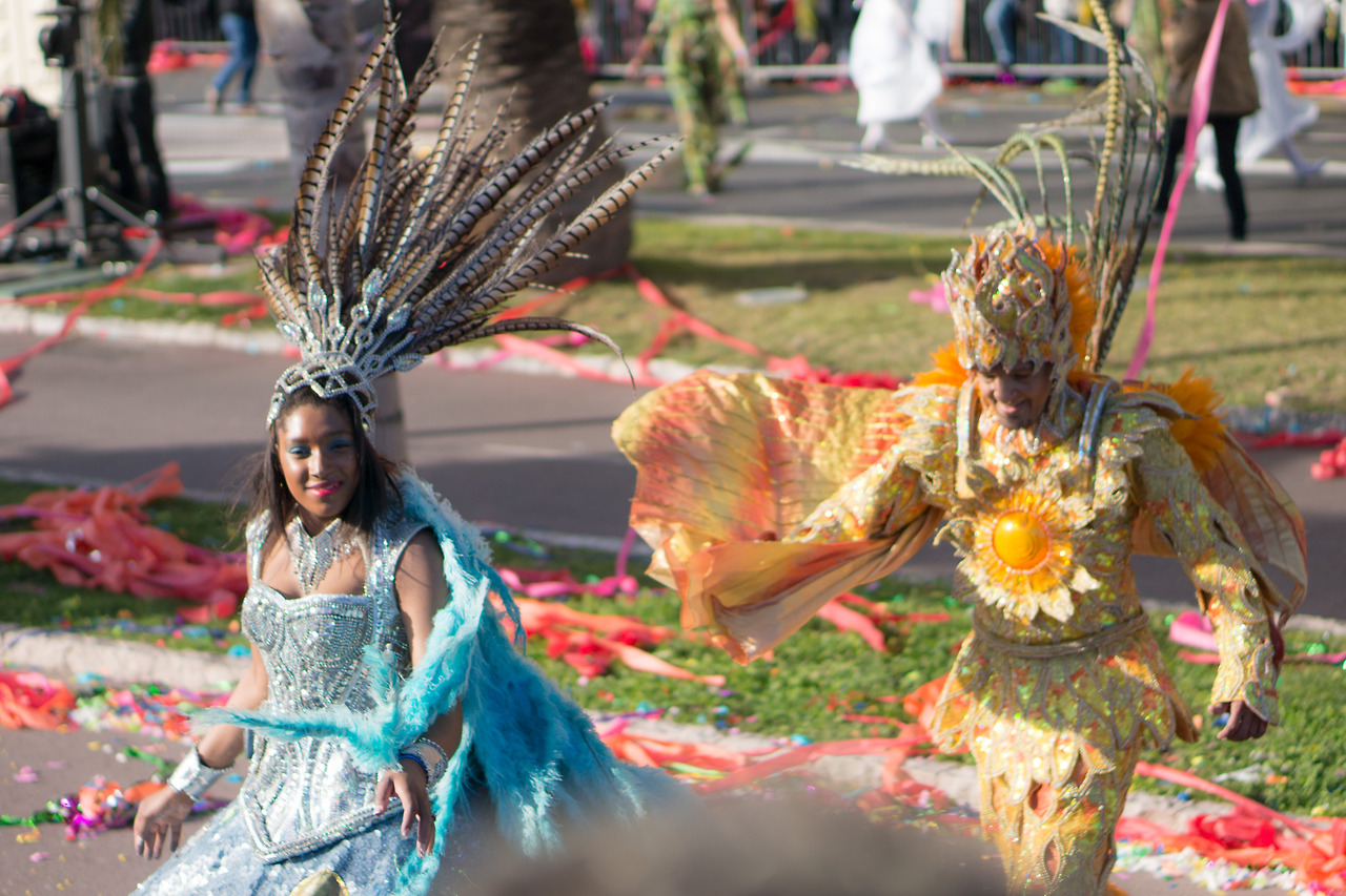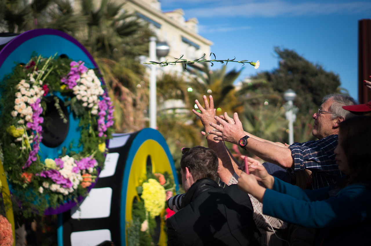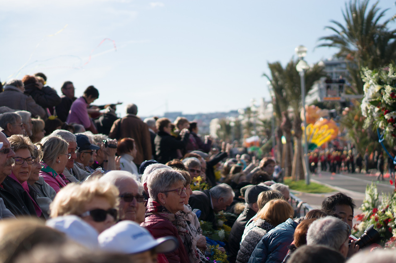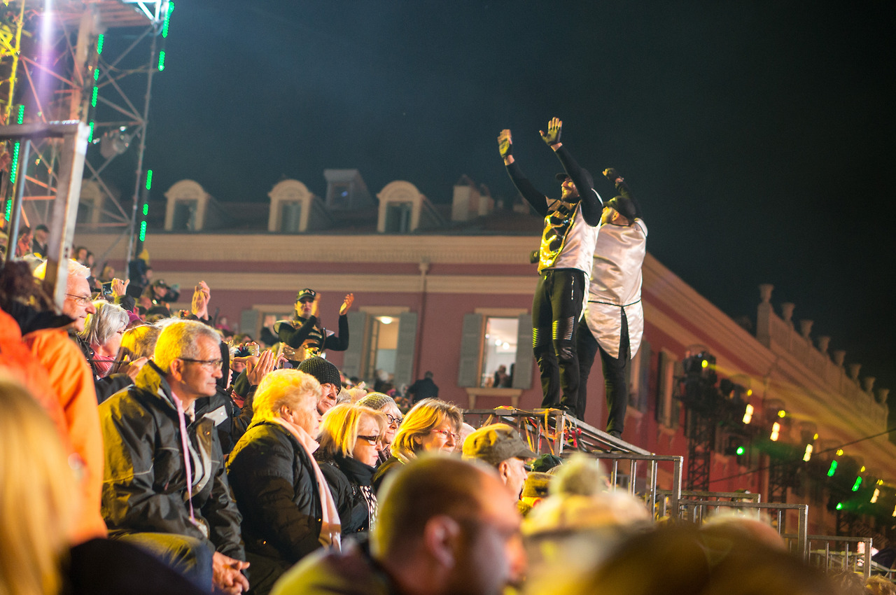 퍼레이드가 한 바퀴를 돌고 나니 사람들이 절반 정도 빠져나간다. 그 덕분에 떨어져서 퍼레이드를 구경했던 나와 영일이, 성철이 형도 다시 만날 수 있었다. 사진은 이미 많이 찍었겠다, 이제는 내려가서 축제 분위기를 즐기기만 하면 된다. 좌석에 앉으면 쉽고 편하게 퍼레이드를 구경할 수는 있지만 확실히 바로 앞에서 서서 보는 것처럼 흥이 나지는 않는다. 그리고 이 니스 카니발이 내가 상상했던 것보다는 점잖은 축제이기도 했다. (다 같이 어울려 춤을 춘다거나... 난리를 친다거나... 그런 건 없다.)