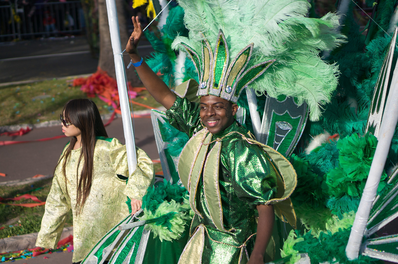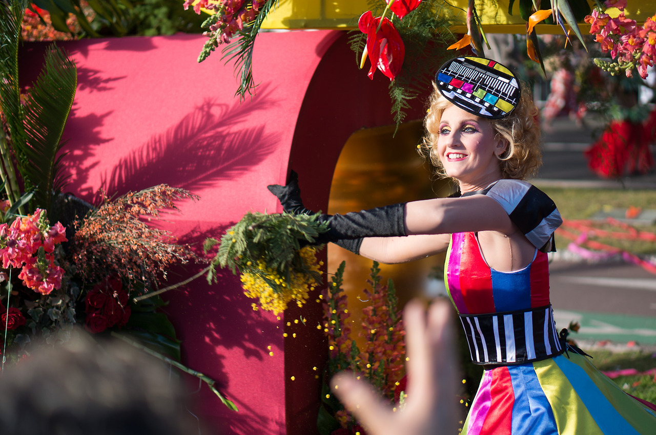 와이파이 보이, 걸(?)들의 경쾌한 율동과 묘기를 시작으로 하여 곧이어 꽃마차가 우리 앞을 하나 둘 씩 지나갔다. 꽃을 던져주는 꽃의 여신(?)들은 대체로 미인들이었다. 카니발이 열리기 전에는 꽃마차에 오를 사람을 뽑는 미인대회가 열린다고 한다.