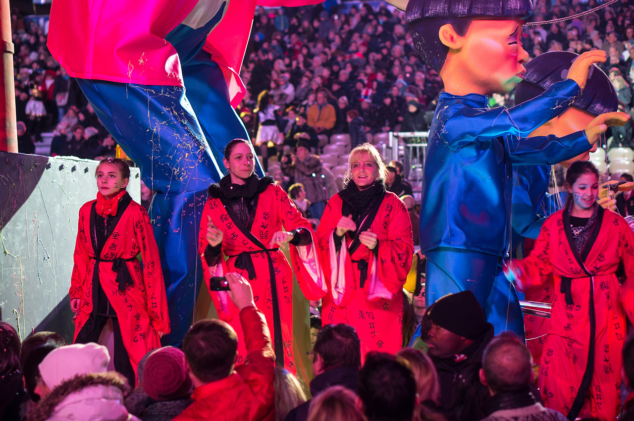 낮의 카니발을 보았으니, 이번엔 밤의 카니발을 즐겨볼 차례. 이번에도 역시 자리를 잡아 놨기 때문에 가려서 안보일 일은 없다. 이번에도 와이파이 보이, 걸 들이 신나게 군무를 추며 축제의 시작을 알린다. 낮의 카니발보다 규모도 훨씬 크고 음향 시스템도 웅장하다. 낮의 카니발은 퍼레이드 관람의 느낌이 강했지만 밤의 카니발은 그나마 조금 축제 분위기가 더 났다.