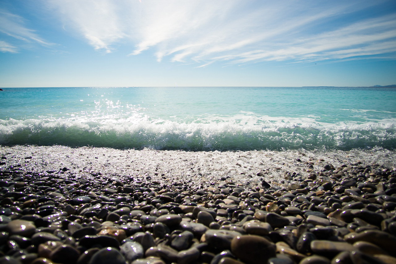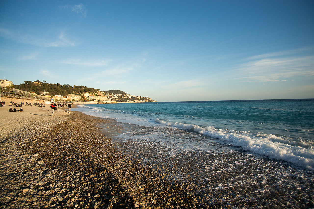 파도소리를 상상하라고 하면 모래사장에 파도가 밀려오면서 나는 소리인 '솨아'를 떠올렸다. 니스의 해변은 자갈해변이어서 '솨아-' 하는 고운 모래 소리 대신에 자갈 굴러가는 '자르르르르' 하는 재미있는 소리가 난다. 파도가 들어올 때 보다 나갈 때 더 뒤를 기울이게 된다. 몇 번을 들어도 질리지 않는, 참 좋은 소리다.
