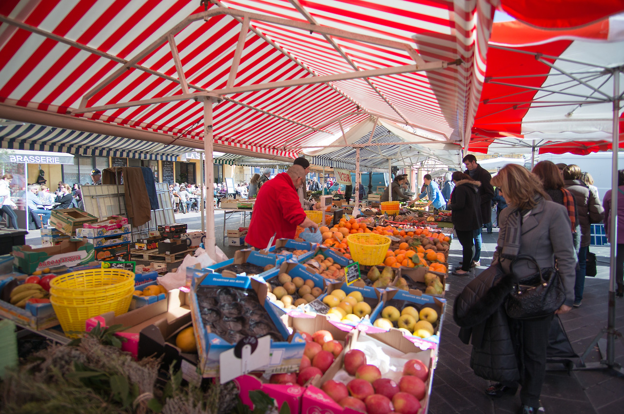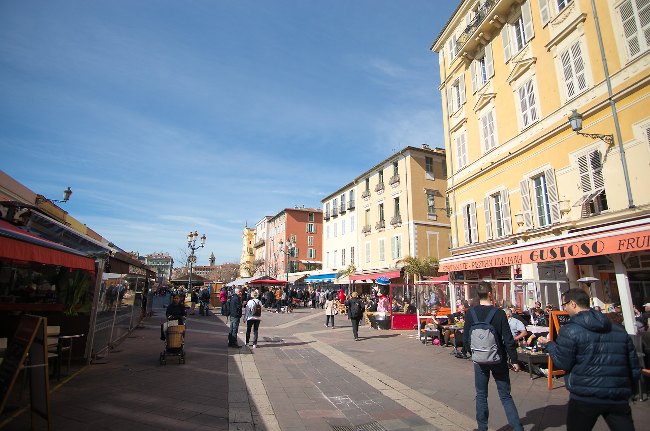 니스의 아름다운 해변을 실컷 구경하고 난 뒤에야 구시가지를 둘러보기 위해 이동했다. 구시가지 쪽으로 들어가는 큰 문을 지나자마자 시장이 나왔다.