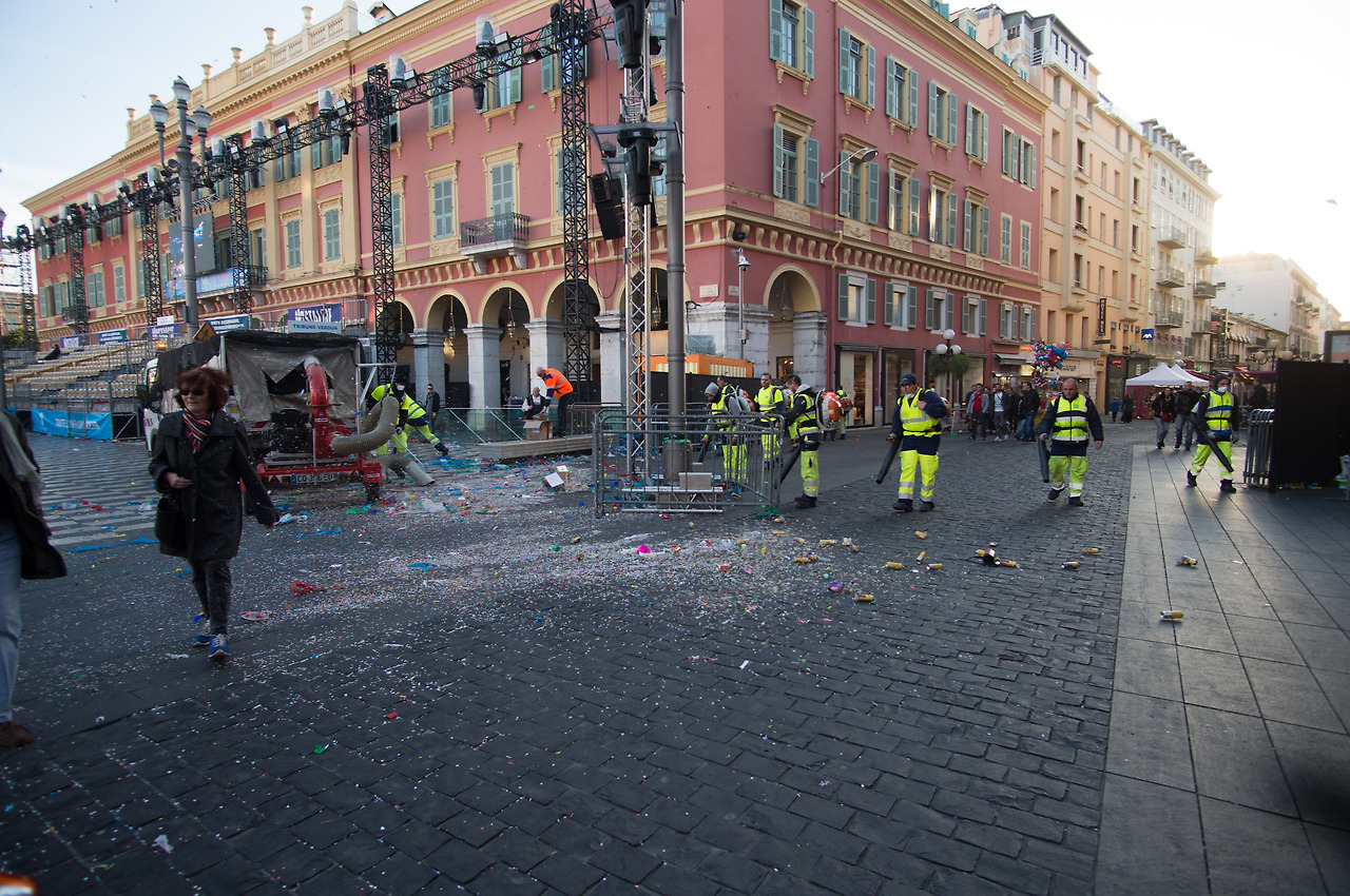 축제가 끝나고 난 뒤, 직후에는 거리에 쓰레기가 가득했지만 다음날이 되자마자 매우 빠른 속도로 쓰레기가 사라지기 시작했다. 강한 바람이 나오는 기계를 하나씩 짊어진 채 일사불란하게 움직이는 청소부들과 구역을 나눠 바쁘게 움직이는 청소차들. 니스에서만 볼 수 있는 독특한 풍경 중에 하나가 아닐까 싶다. 축제 후 현장을 치우는 청소계의 프로들이 사는 도시랄까.