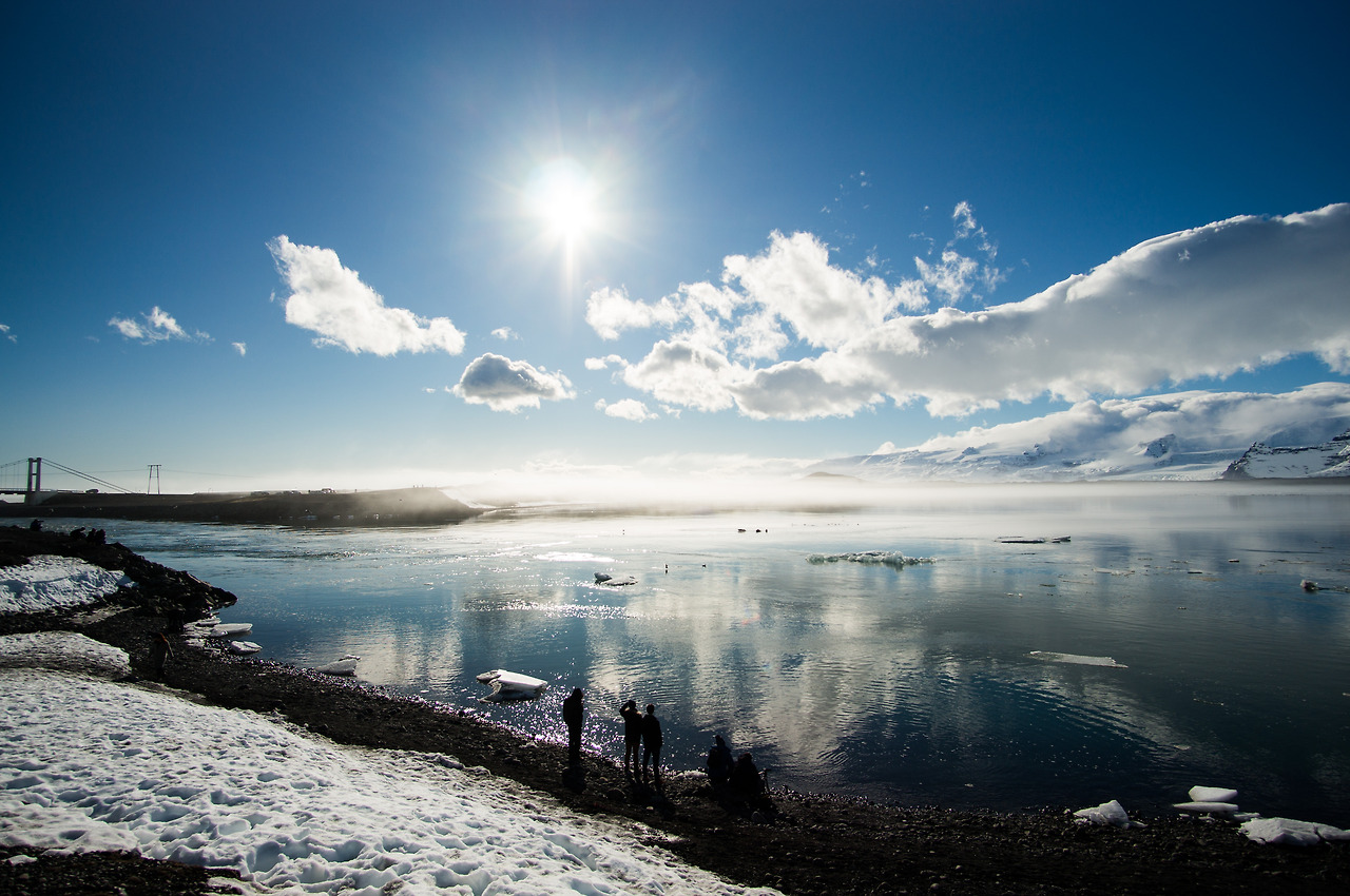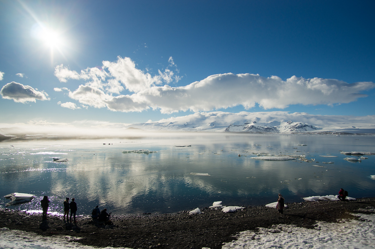 요쿨살롱으로 가는 길에 있는 빙하호인 Fjallsarlon Glacier Lagoon 에 잠시 내렸다. 온 사방이 하얀 눈으로 덮여 있어서 선글라스 없이는 눈을 뜨고 있기가 힘들었는데, 하필 이곳에 내렸을 때 선글라스를 차에 흘려서 계속 맨눈으로 봐야 했다. 정말 눈부시던 눈.