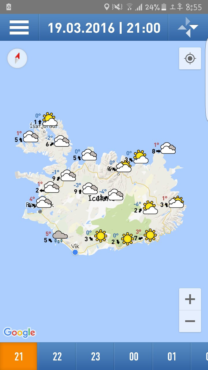 이미 알고 있던 기상 상황이었지만 '마지막 기회'라는 말에 눈이 번쩍 뜨인다. 시도 때도 없이 변하는 아이슬란드의 날씨는 좀처럼 가늠할 수 없어서 날씨 예보를 보는 것이 별 의미가 없다. 날씨 어플에서는 내일 밤이 꽤 맑다고 나와있긴 했지만 지난밤처럼 구름이 순식간에 몰려와 하늘을 뒤덮으면 소용없는 일이다. 아직 오로라를 구경도 못한 우리의 마음에 종현이형의 카톡이 불을 지폈다.