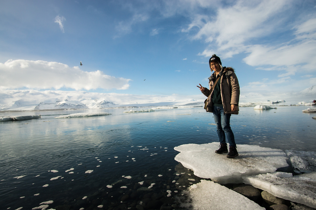 요쿨살롱에 도착했다. 아이슬란드의 상당 부분을 차지하고 있는 거대한 빙하가 있는 곳이다. 북극에나 가야 볼 수 있을 것 같은 풍경이 펼쳐졌다. 작은 얼음 덩어리들이 유유자적 떠다니고 있고 물에 비친 맑은 하늘의 빛깔은 더 없이 오묘하다.