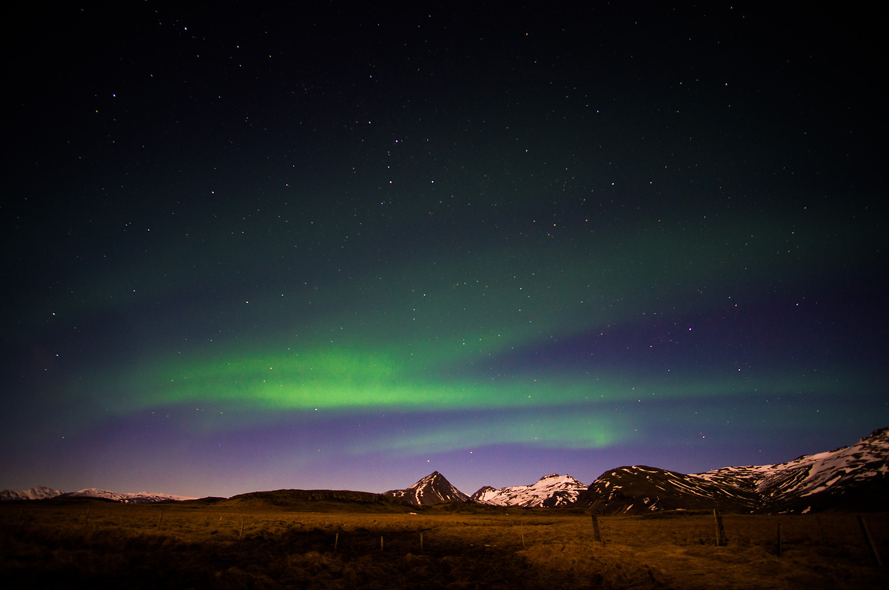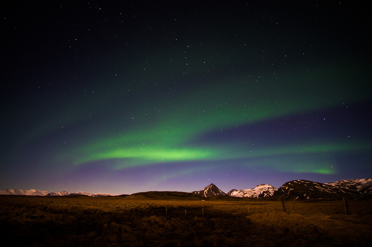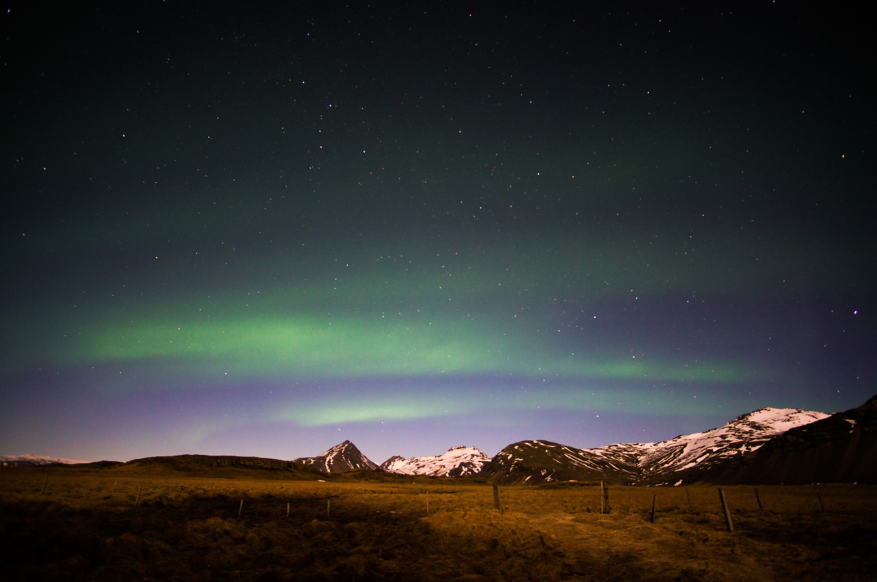 아이슬란드에서의 마지막 밤, 드디어 정말 깨끗한 날씨를 만났다. 비록 오로라 지수는 1과 2 사이였지만 전날보다도 선명한 푸른빛을 볼 수 있었다. 푸른색이 눈에 확실하게 보인다. 이제야 비로소 오로라를 보고 왔다고 말할 수 있을 것 같다.