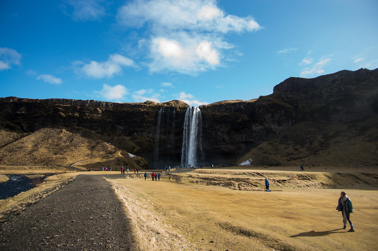 새파란 하늘 아래에서 신나는 음악을 들으며 드라이브를 하다 보면 어느새 내릴 때가 된다. 처음 멈춰 선 곳은 셀야란즈포스. 폭포를 구경하러 조금씩 다가가는데 관광객들의 상태가 조금 이상하다. 다들 이 멋스런 폭포에 취한 나머지, 폭포 아래에서 물장난이라도 한 것처럼 머리와 옷이 흠뻑 젖어있다. 호기심을 안은 채 폭포에 조금 더 가까이 들어가 보기로 했다.