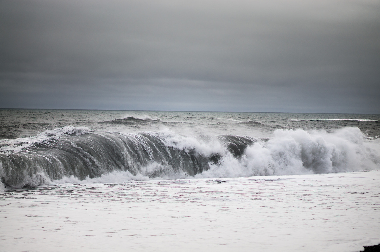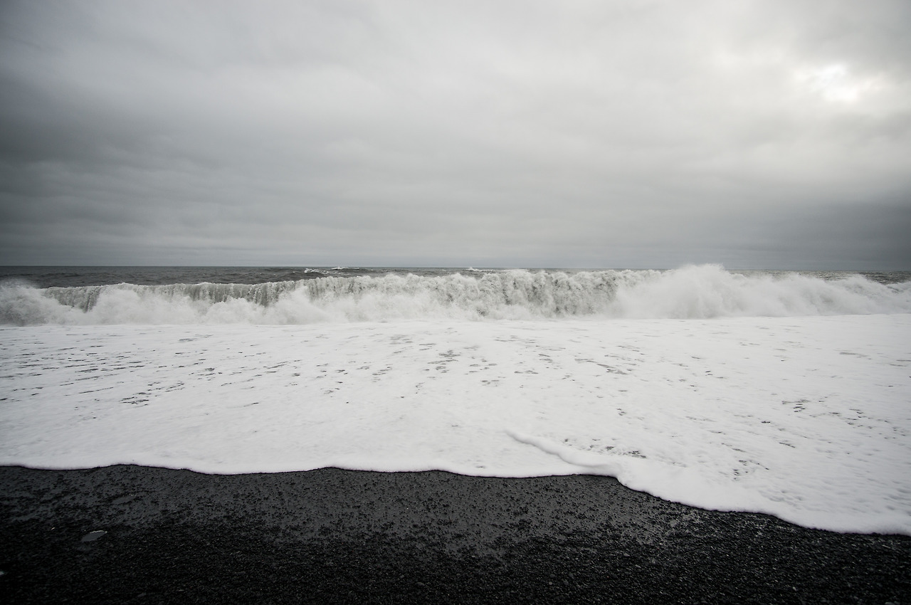 검은 모래 해변으로 알려진 레이니스파라. 디르홀레이에서도 보이지만 해변은 걸어봐야 한다는 생각에 차를 타고 5분 정도 이동해서 도착했다. 티끌조차 없는 깔끔한 화선지에 누군가 먹물을 쏟는 것처럼, 새까만 모래사장에 하얀 파도 거품이 이는 모습이 왠지 모르게 통쾌하다. 온 해변을 순식간에 흰색으로 뒤덮었다가도 언제 그랬냐는 듯 사르르 사라지는 거품들.