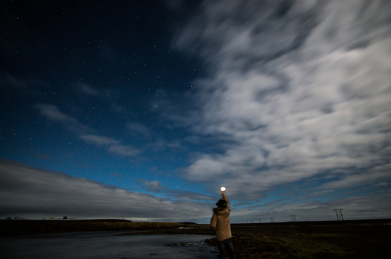 불빛 하나 없는 깜깜한 어둠 속에서 플래시를 이리저리 흔들어 우리들만의 '오로라'를 만들었다. 시간 가는 줄 모르고 빛으로 글씨를 쓰며 놀고 있을 무렵, 정말 신기하게도 구름이 조금씩 갈라지기 시작한다. 한번 갈라지기 시작한 구름은 빠른 속도로 멀어졌고 그 사이로 맑은 하늘이 비췄다.