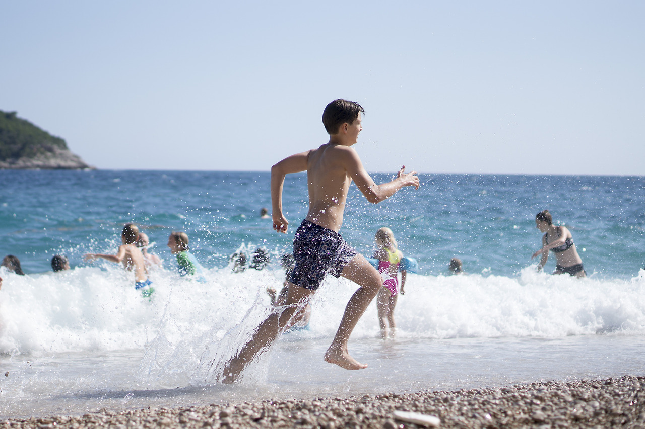 영롱하고 얌전해 보이는 두브로브니크의 해변은 생각보다 강한 파도로 격하게 환영인사를 한다. 나보다 어린 여자 아이들 조차 파도를 넘나들며 수영을 하는 모습에 충격을 받기도 했다. 에너지 넘치는 이 해변에서 나이X 광고 등에 나올 법한 장면을 포착했다.