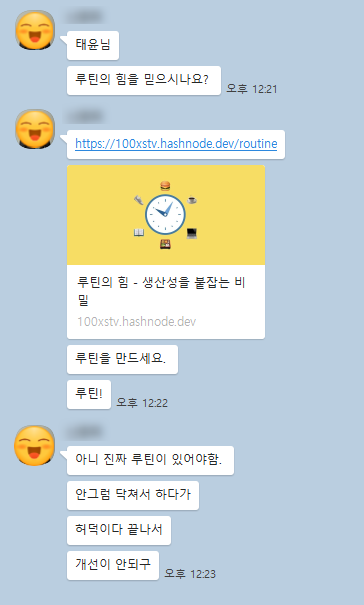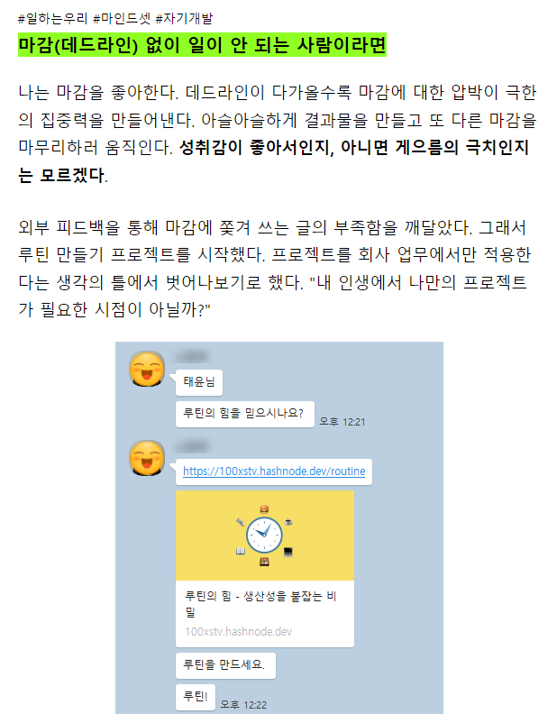 변화해야겠다는 생각이 들어 운영자의 글을 읽었고, 루틴에 대한 답이 하나 둘 보이기 시작했다.