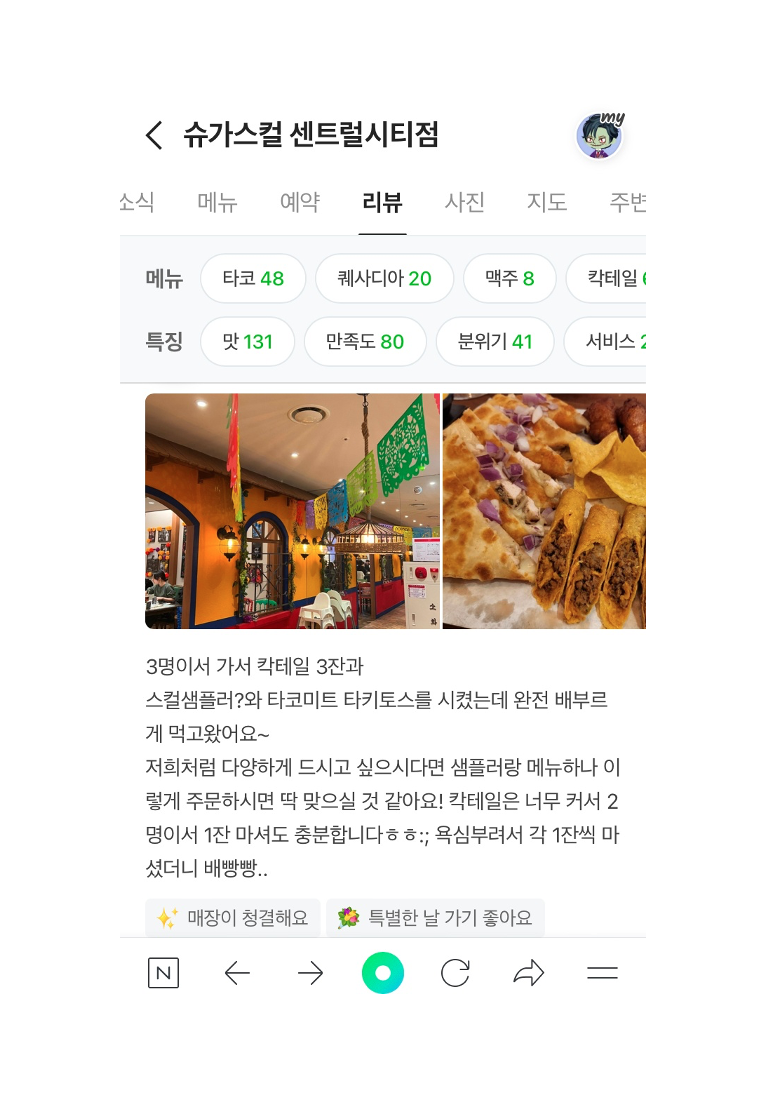 또한 지속적인 콘텐츠 발행을 위해서는 리뷰 콘텐츠를 많이 모아야 합니다. 하지만 자주 많이 올리는 것보다 더 중요한 것은 리뷰의 질입니다. 이벤트 등을 통해 고객이나 인플루언서에게 리뷰를 요청할 때는 꼭 정성껏 사진을 포함한 리뷰를 요청해야 합니다. 예를 들어 어떤 점이 좋았다든지, 매장이요 꿀팁이라든지, 추천 메뉴 조합 등을 리뷰에 남겼을 때 더 많은 고객 체류를 만들어내게 됩니다.