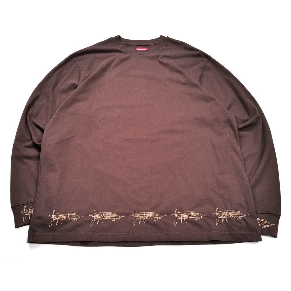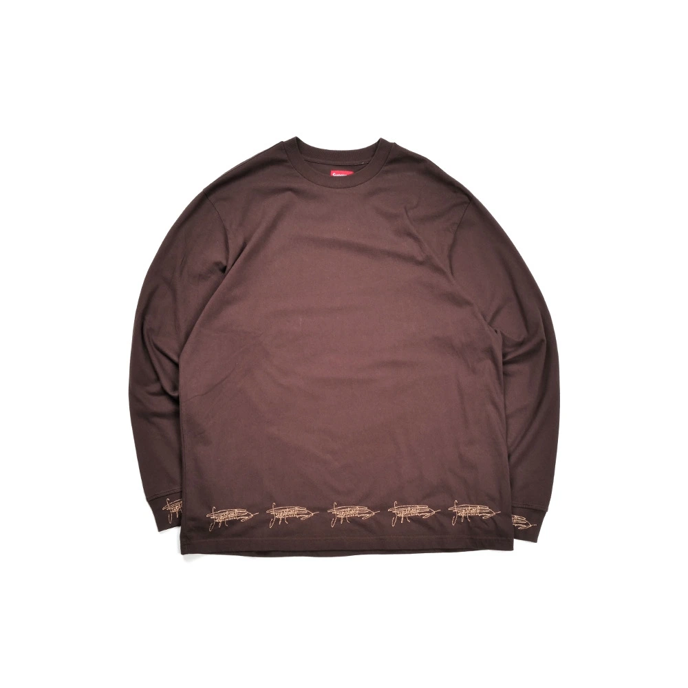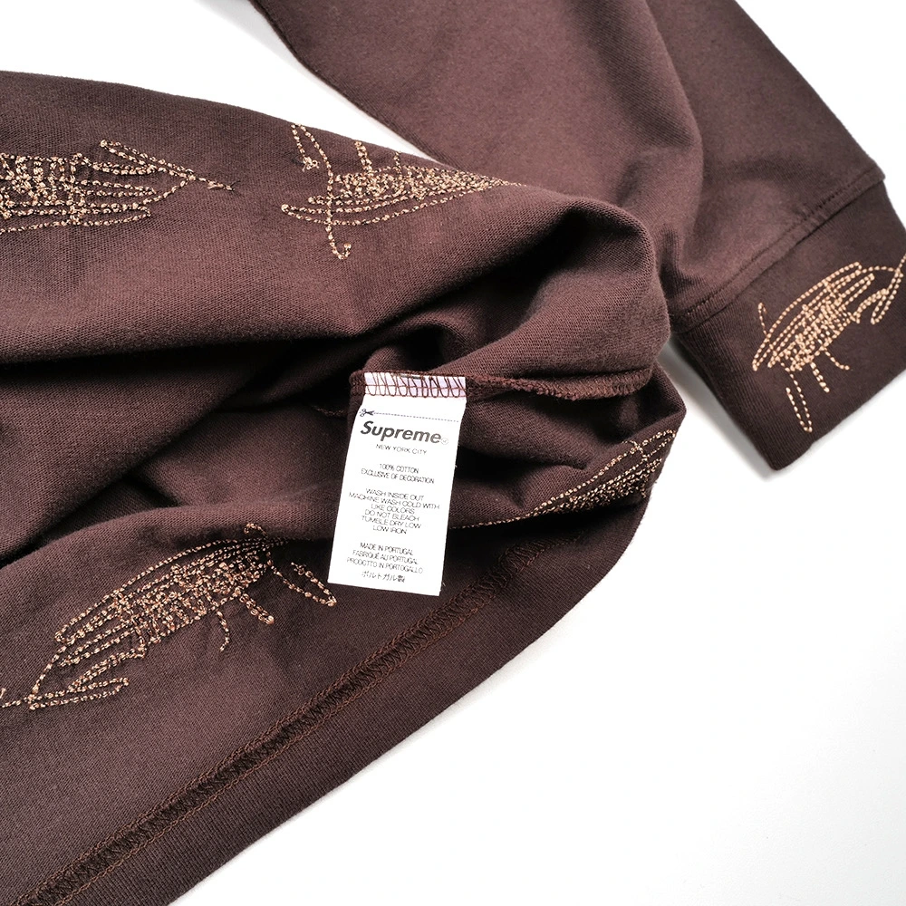 바로 이 자수 디테일. 소매와 밑단에 새겨진 ‘SUPREME' 필기체. 뭔가 슈프림을 너무나도 사랑한 팬이 그냥 공책에 슈프림슈프림슈프림 끄적끄적 낙서하다가 에잇 하고 지워버린 그런 감성이에요.