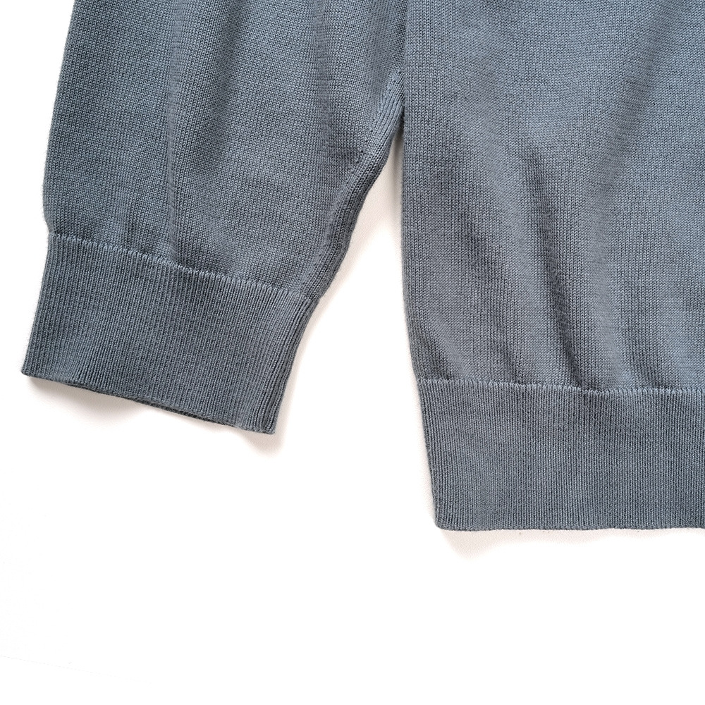 매우 얇은 니트라 환절기인 지금 입기에 아주 좋고, 또 얇은 만큼 머슬핏 내기도 좋습니다(물론 머슬이 장착되어 있다는 전제 하에). 채도가 낮으면서 탁한 하늘색 색감이 매우 특이합니다. 사진 조명 때문에 부분 부분 물 빠진 것처럼 나와서 조금 속상하네요. 되게 되게 심심한 카라 니트 같지만, 코스? 마시모두띠? 아르켓? 그 어디서도 이런 색감의 니트는 보지 못했습니다.