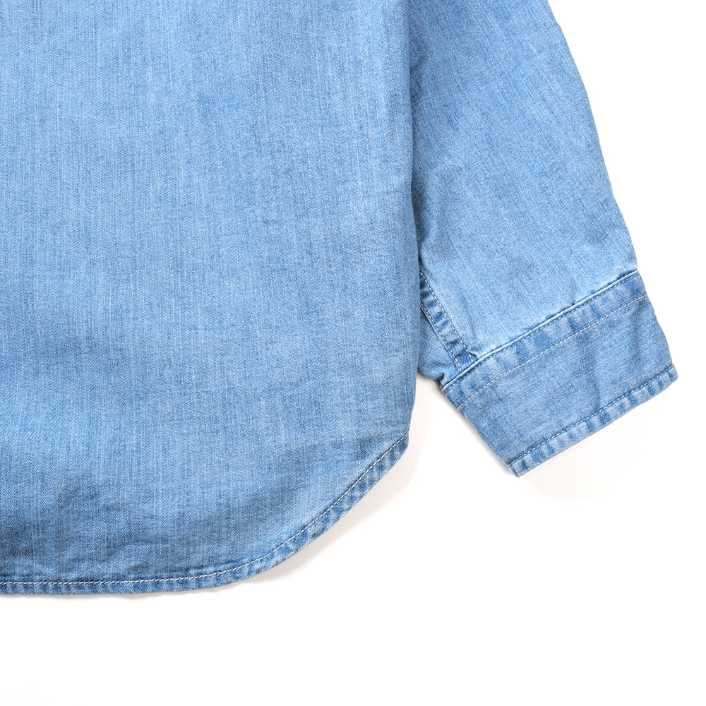 사진 보면 느끼시겠지만 색감 하나 믿고 가져왔습니다. 연청 색감이 봄과 정말 잘 어울리는 데님 셔츠입니다. 여성 사이즈인데 사이즈가 꽤 넉넉하게 나와서 남성 분들도 착용 가능합니다. 대신 꼭 실측을 통해 확인해 주세요.