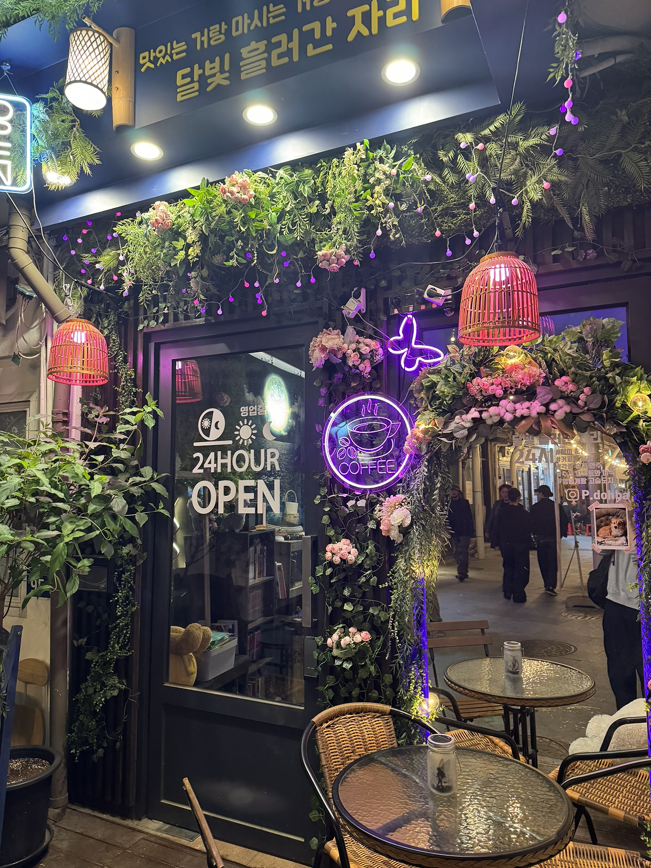 특이하게 무인이 아닌데 24시간 카페였어요. 귀여운 강아지들이 손님들을 맞이해 주는 곳이라 평소 애견인이라면 강력 추천합니다.