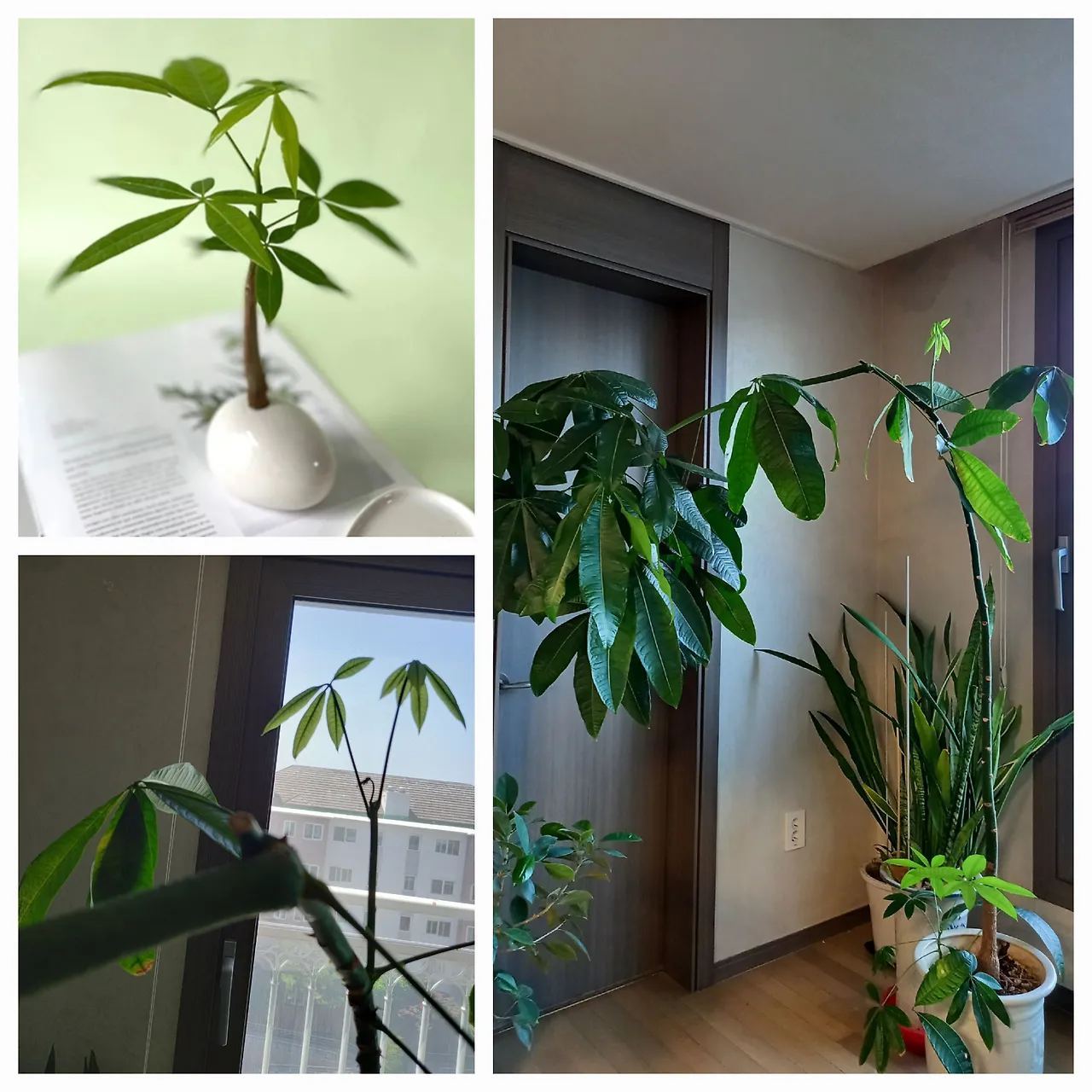 그런데 이번에는 너무 잘 자라는 게 문제였다. 커다란 화분에 농사 지을 때나 쓰는 퇴비를 넣었던 것이 파키라의 무한 잠재력을 깨운 것이다. 4년 정도 지나자 그 작은 나무가 천장 가까이 자랐다. 어느날 친정 엄마가 그 나무를 보더니 꼭대기 부분을 뚝! 부러뜨렸다. 천장을 뚫기라도 할까 근심하셨던 것일까?