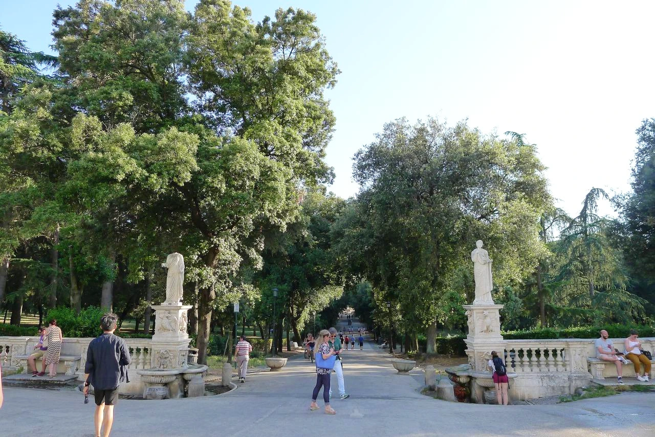 보르게세 미술관에서 베르니니 작품에 기를 빨리고 나오니, 한여름의 지중해 볕이 땅에 처박히고 있었다. 그 강렬한 볕 앞으로 펼쳐진 보르게세 공원 초입의 비주얼에 유유자적함이 가득했다. 14시간 비행의 여독이 남은 상태로 북적이는 로마 관광지를 활보하고 다닌 탓일까. 유유자적함에 대한 갈증이 가득했던 이 여행자는, 보르게세 공원 속으로 빨려 들어갔다.