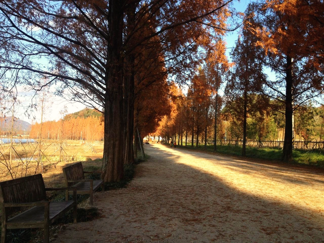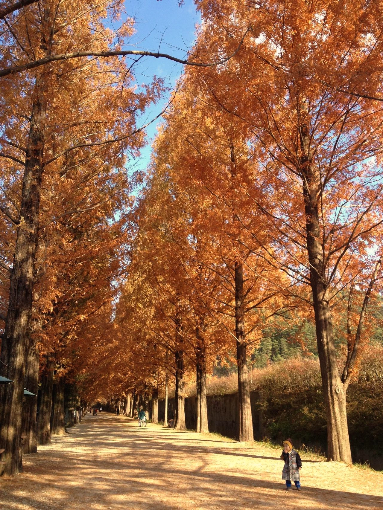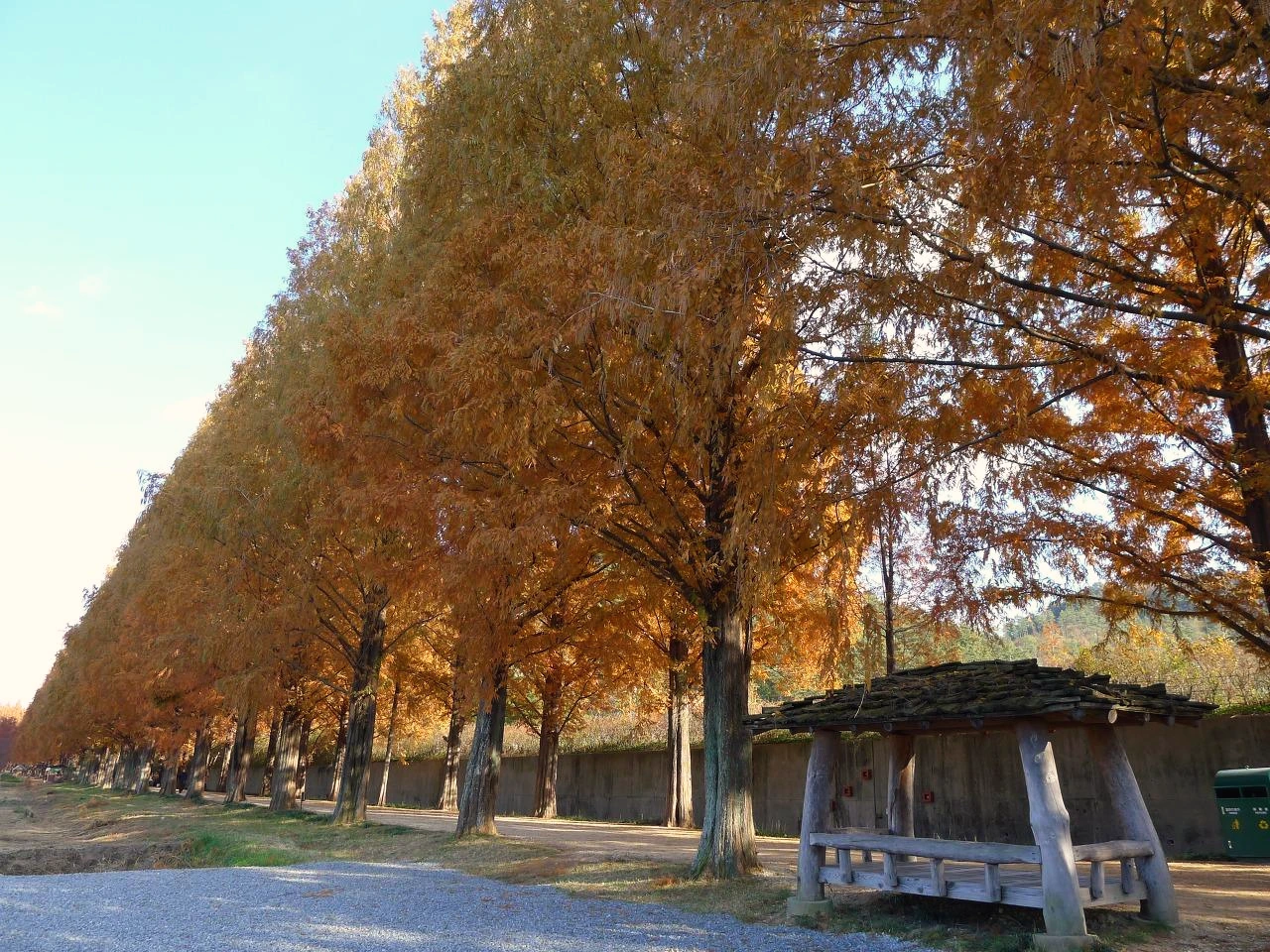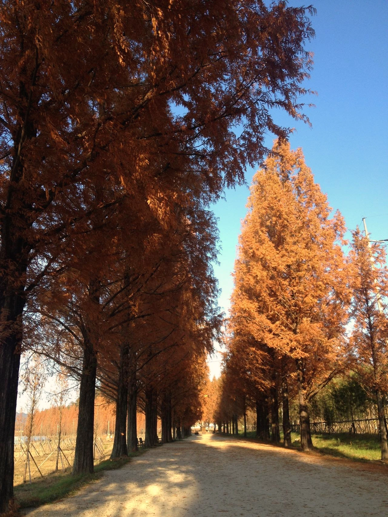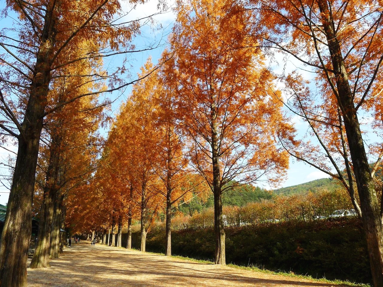 메타세쿼이아의 단풍은 늦게 든다. 빛을 받는 양 때문에 좌, 우 가로수 중 한쪽 나무는 초록을 뒤늦게서야 벗는다. 좌, 우 골고루 완연한 황갈색으로 변할 때를 벼르고 벼르다 갔던 여행은 성공이었다. 늦가을의 메타세쿼이아 컬러를 대량 개방해 본다.