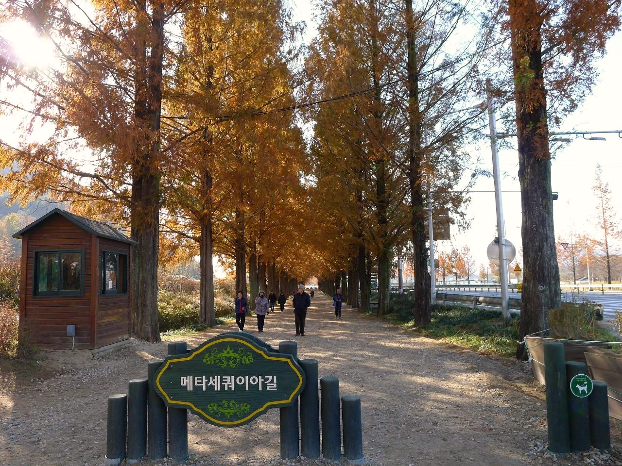 대나무를 이른 시간에 보고 메타세쿼이아 길에서 유유자적하게 걷는 게 좋다고 판단하여,