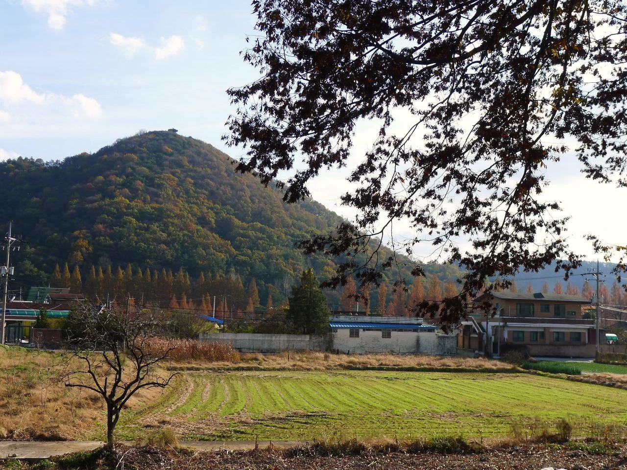 저 맞은편 언저리에서 왼쪽 방면으로 직진하면 관방제림이다. 그곳을 2km 정도 지나면 메타세쿼이아 길.