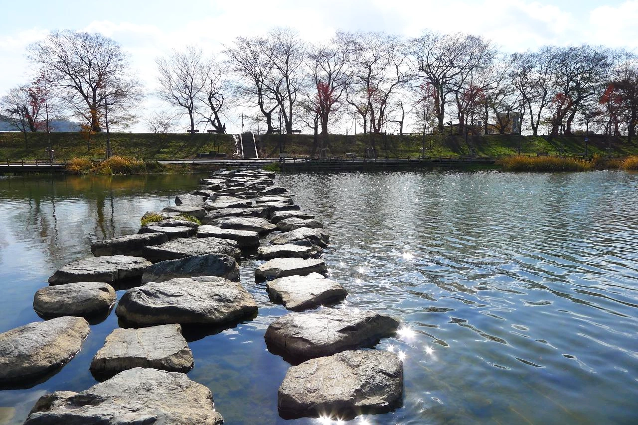이 징검다리를 건너고 싶었지만 패스. 힐을 신은 탓에, 미끄러질까 봐 무서워서 몇 걸음 못 가 되돌아왔다.