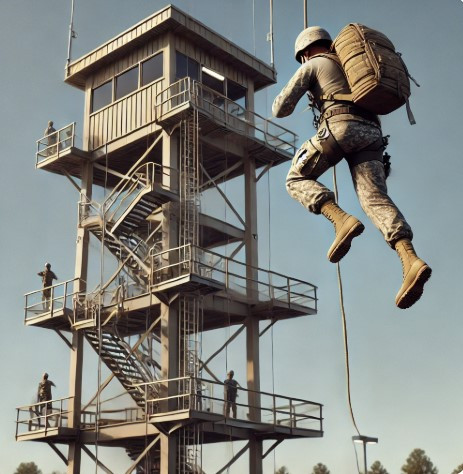 훈련조교들이 공중에 있는 밧줄에 매달려 있는 학우를 구조하느라 훈련이 중단되었다. 만약 내가 그 학우와 같은 상황에 놓였더라면 덜덜 떨었을 것이다. 시간은 지체되었지만 그 학우는 무사히 구조되었다. 다시 훈련이 재개되었다. 대기줄은 점점 짧아져서 내 차례가 되었다.
