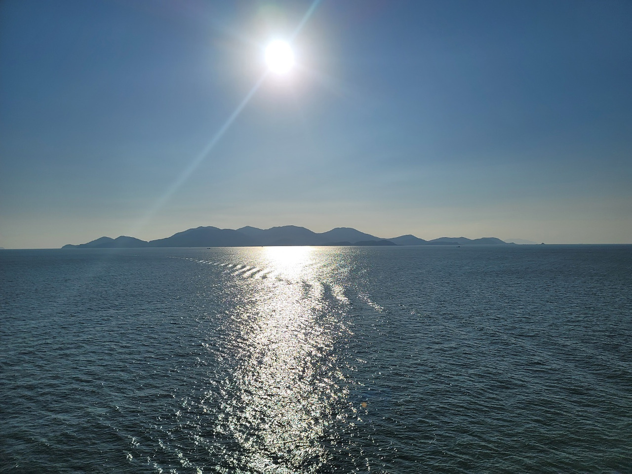 파도로 말미암아 페리 선체의 흔들림이 있으나 그리 강하지 않게 느껴졌다. 예전에 페리를 탔을 때보다 조금 강한 정도의 흔들림이랄까. 그런 느낌이었다. 탁자 위에 노트북을 켜고 문서작업을 하다가 선실 창 밖을 보면 끝없이 바다가 펼쳐 보였다. 그러다가 섬들이 하나 둘 눈앞에 들어오더니 서서히 사라졌다.