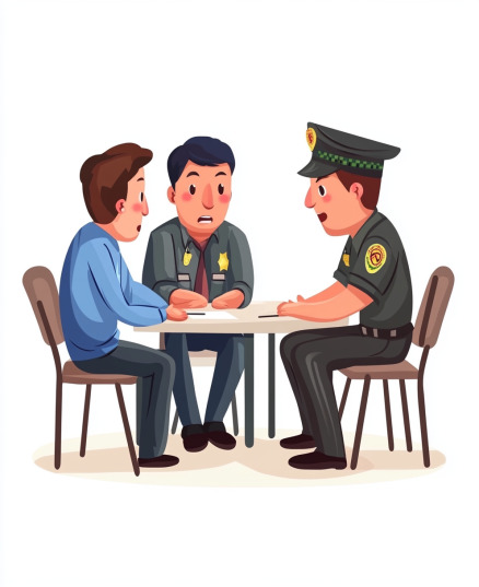 경찰을 만나기 위해 약속날짜에 경찰서에 방문했다. 경찰은 비어있는 사무실로 안내했고 경찰의 맞은편 자리에 나와 학원대표가 앉았다. 경찰은 사실조사를 하기 위해 우리에게 질문을 했다. 학원대표는 참고인으로서 나를 도와주기 위해 참석했다고 경찰에게 말했다.