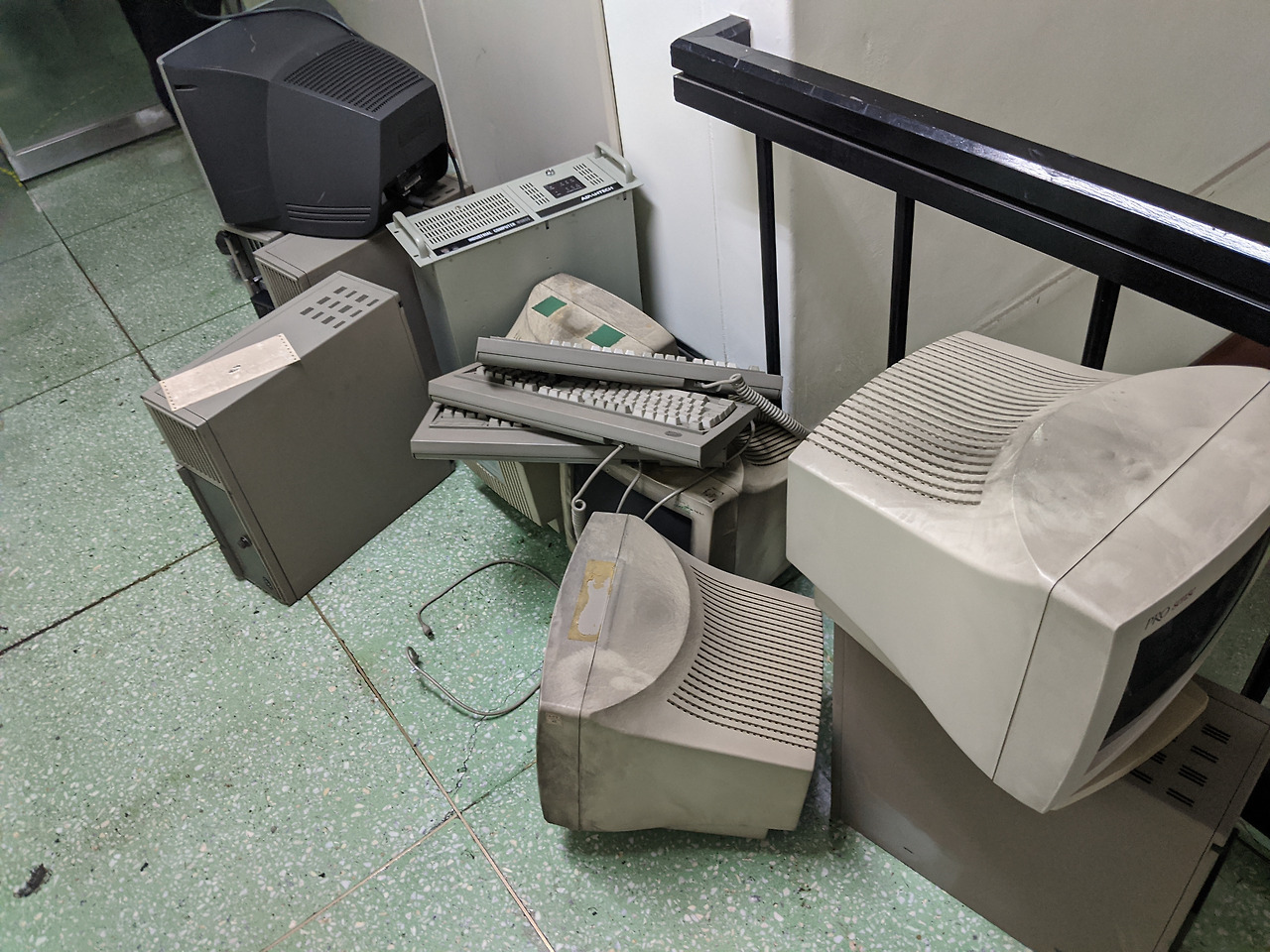 발견 당시의 모습은, 먼지를 한참 뒤집어쓰고 또 뒤집어쓴 모습이었다. 요즘은 보기 힘든 CRT 모니터가 있었고, IBM의 산업용 PC도 있었다. 그것도 무려 세 세트가 거의 온전한 상태로 발견된 것이다.