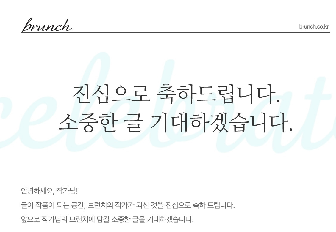 브런치로부터 ‘작가님’이라는 호칭을 부여받으며, 합격 메일을 받았다.