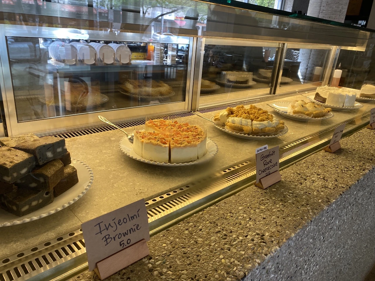 쇼케이스 안으로 보이는 각종 타르트와 케잌들.