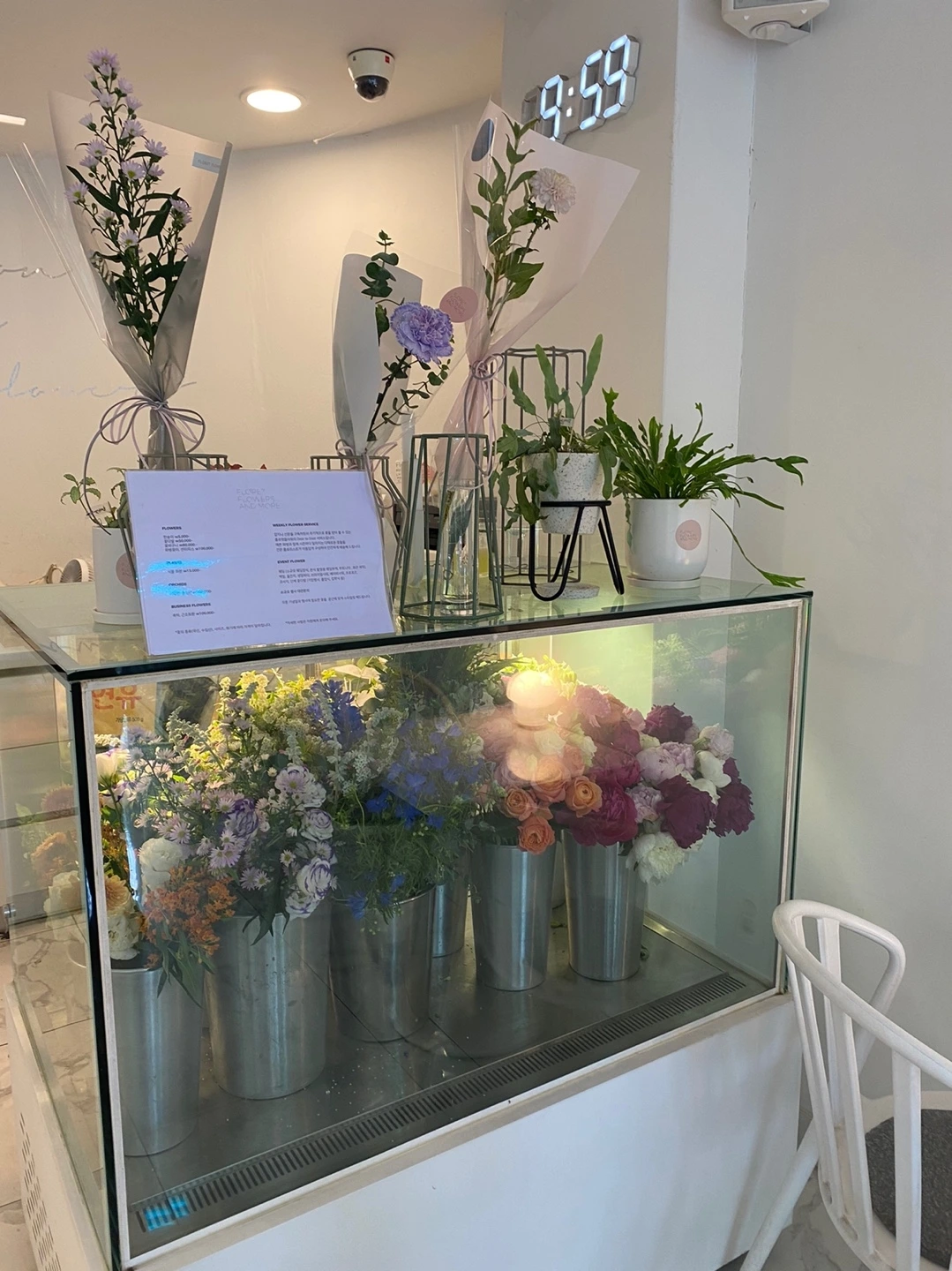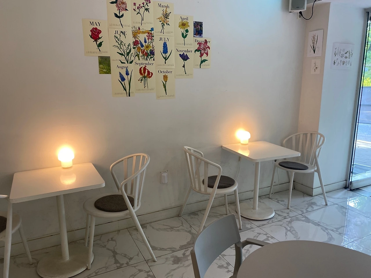 값싸고 예쁜 꽃들이 한 켠에 자리 잡고 있으며, 그윽한 향기의 커피와 밀크티, 그밖의 맛좋은 에이드, 몇가지 쿠키류와 빵류가 구비되어 있다.(여름엔 맛좋은 빙수도 최고)