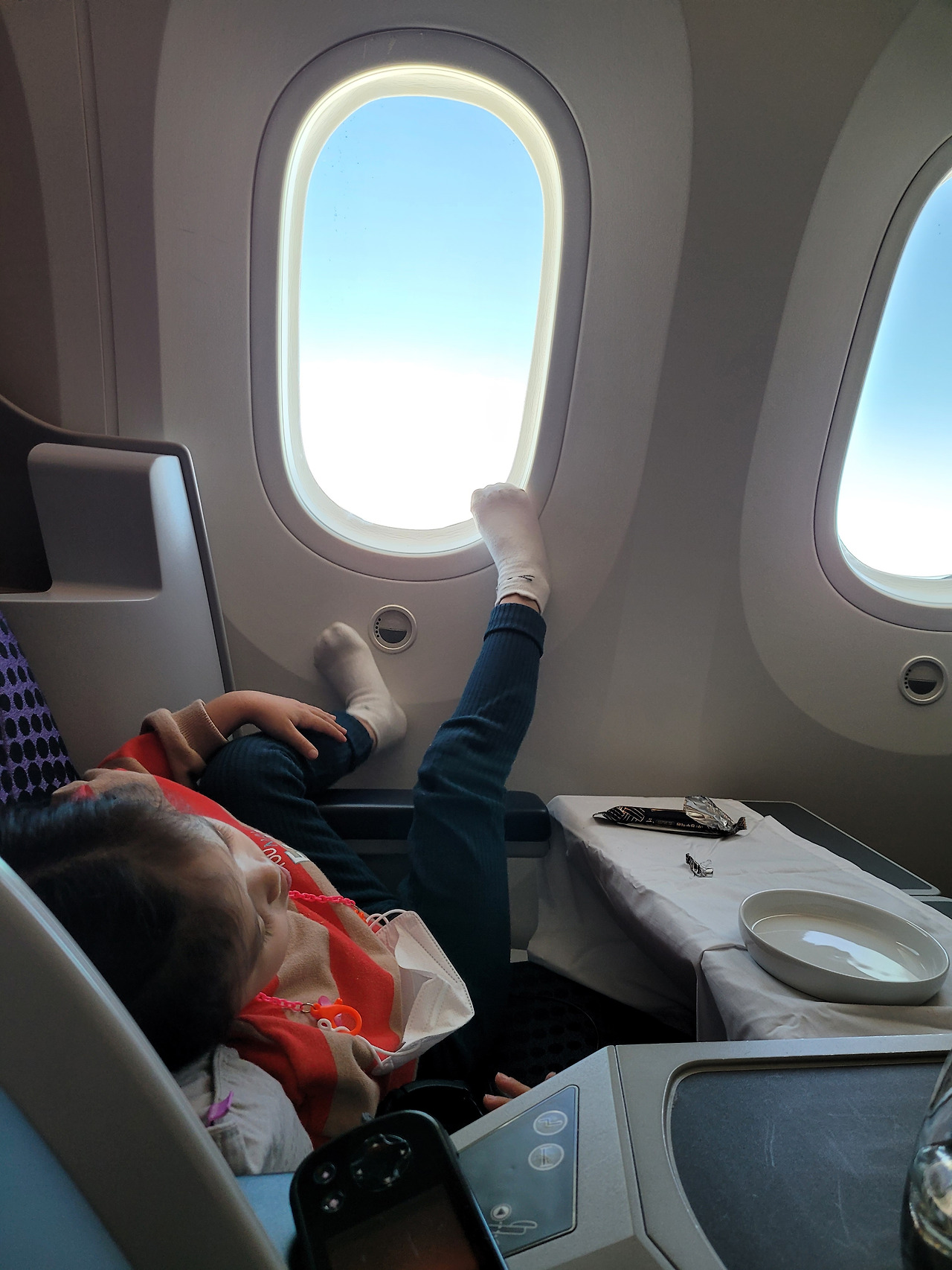 막상 보딩해서 들어가보니 좌석을 어디로 할지 고민했던 시간이 무색하게 비즈니스좌석은 우리 말고는 단 한명의 승객뿐이었고, 자리를 골라앉아도 될만큼 자유로운 분위기가 만들어졌다.