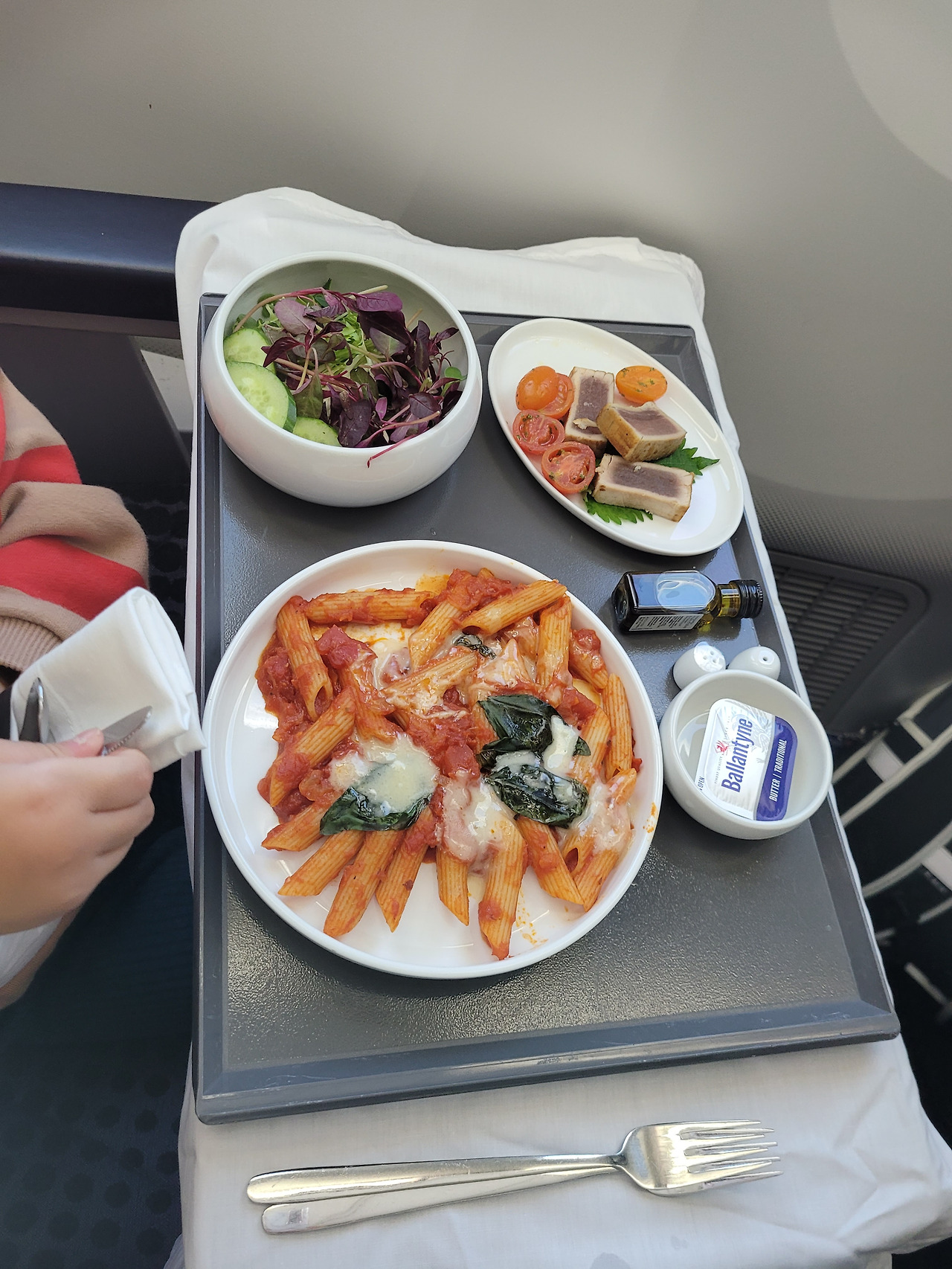 다들 이 아에로메히꼬는 정말 뭐가 별로고 뭐가 별로고 궁시렁 궁시렁 말이 많았지만, 라운지에 편히 앉아 간단한 스낵을 즐기다가 탔는데도!! 항공기 만세! 비즈니스석 완전 좋아!! 우리 셋은 모두 해피모드.
