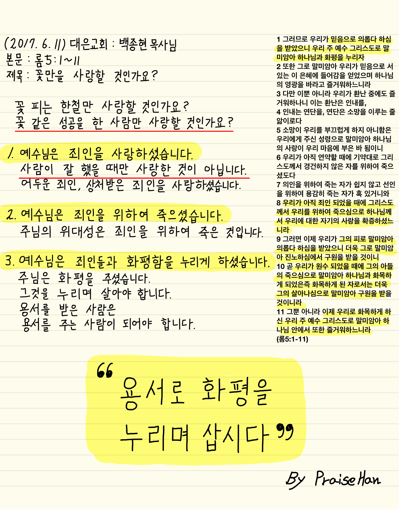 #설교노트 #롬5장 #꽃만을사랑할것인가요