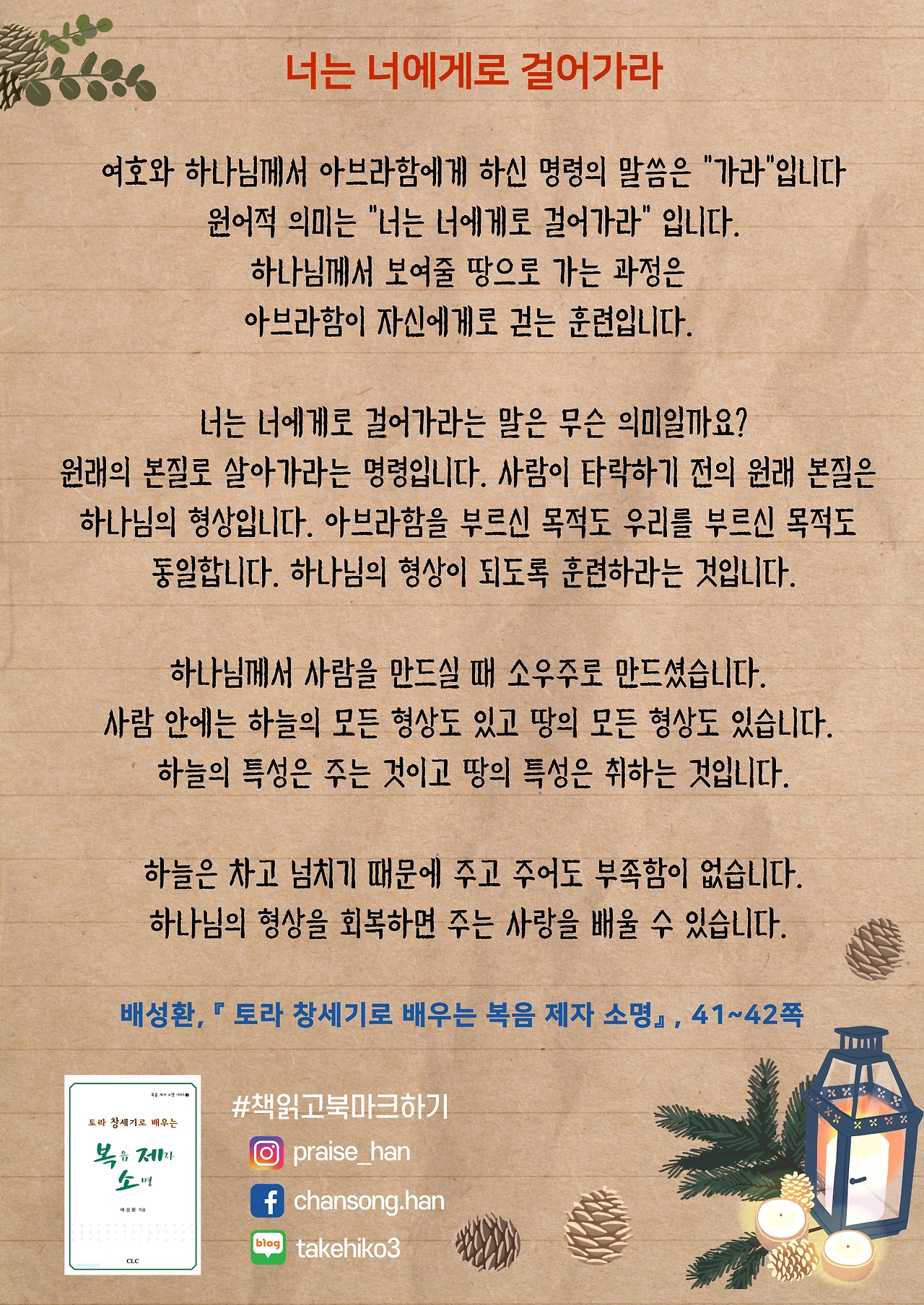 #너는너에게로걸어가라#복제소창세기_41_42페이지 #배성환목사#책읽고북마크하기 #한찬송목사