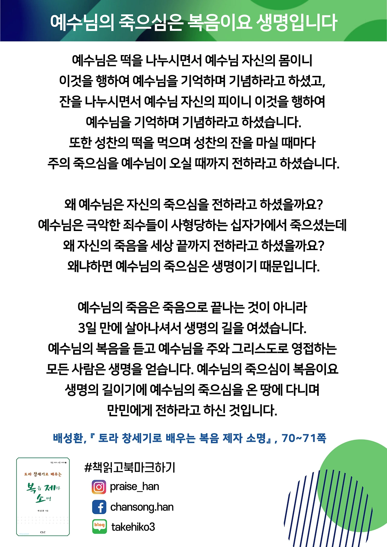 #복제소 #창세기 #예수님의죽으심이생명이다 #배성환